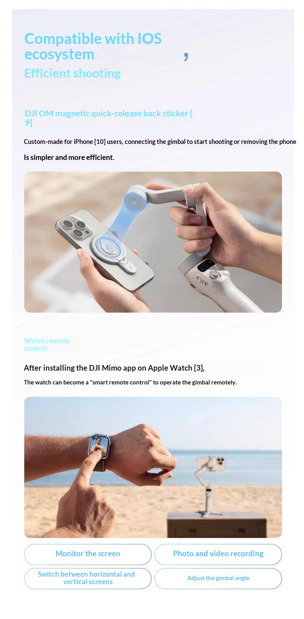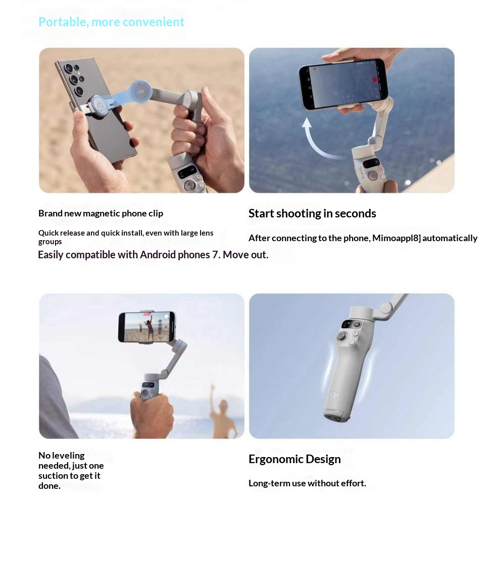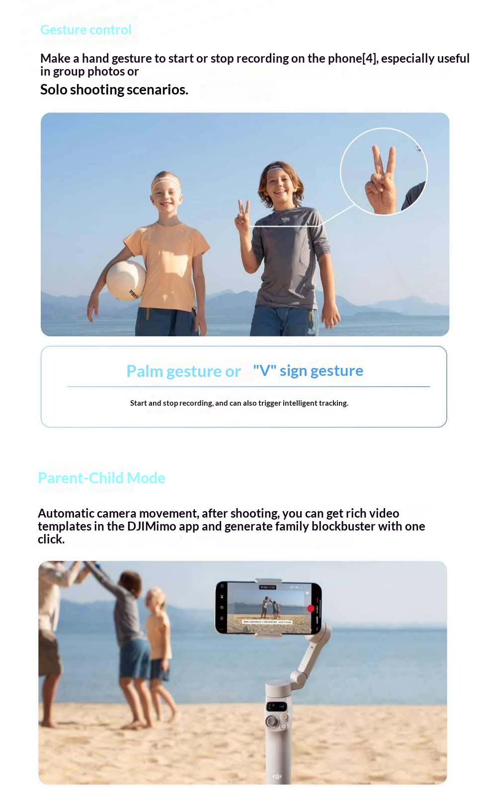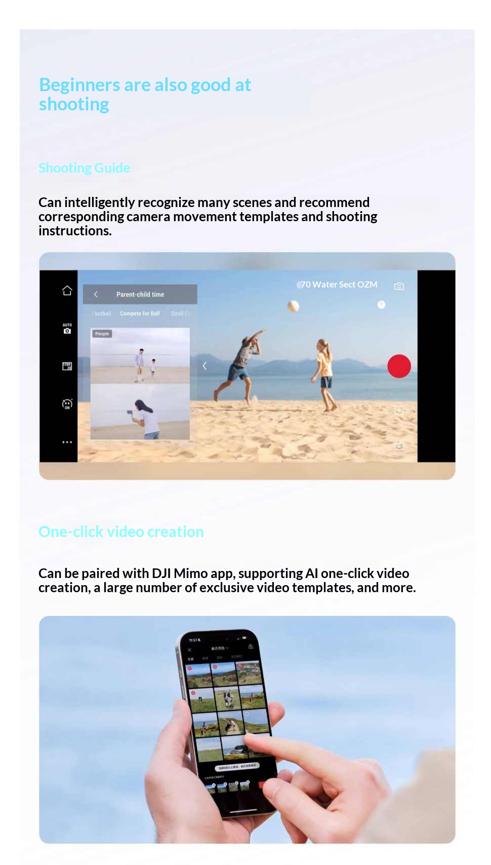 4. One-Key Video Editing: Supports integration with the DJI Mimo app for AI-powered one-click video creation.