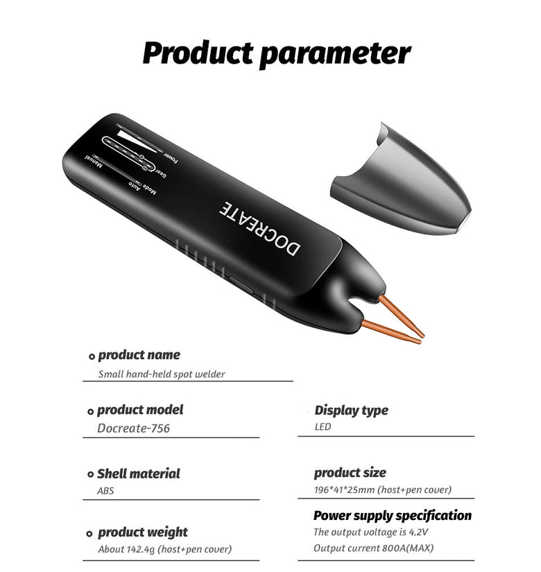 • Docreate-756 Small Hand-Held Spot Welder 800A 4.2V LED Display Portable Lightweight ABS Welder Machine