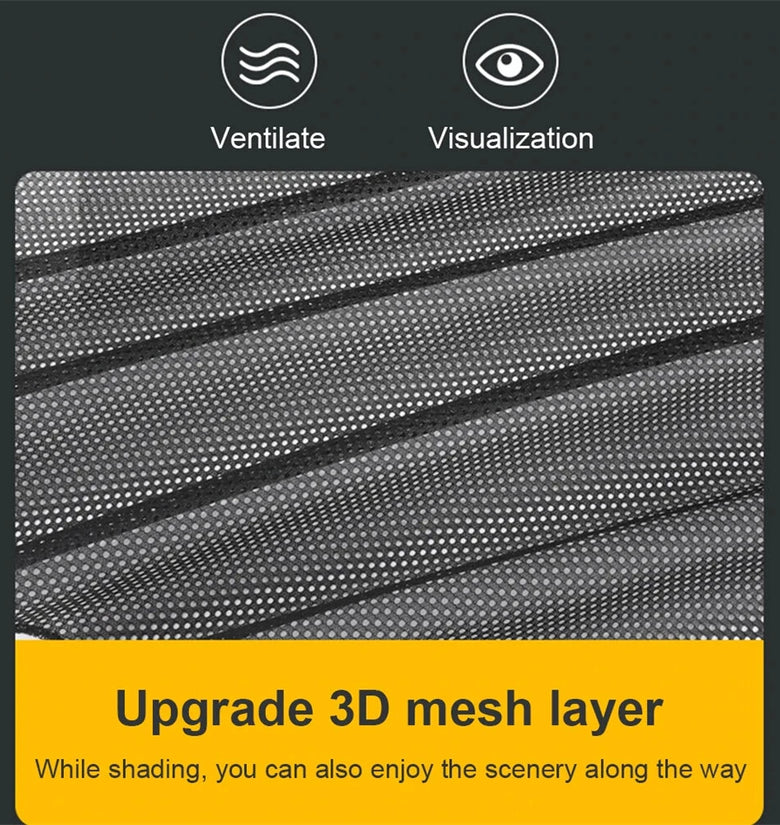 1. Versatile Double-Layer Design: The car side window sun shade features a unique, dual-layer flip-up mesh design. Use the single mesh layer to block out the glare while still enjoying the view, or apply both layers for complete shading and a cooler, more comfortable ride.