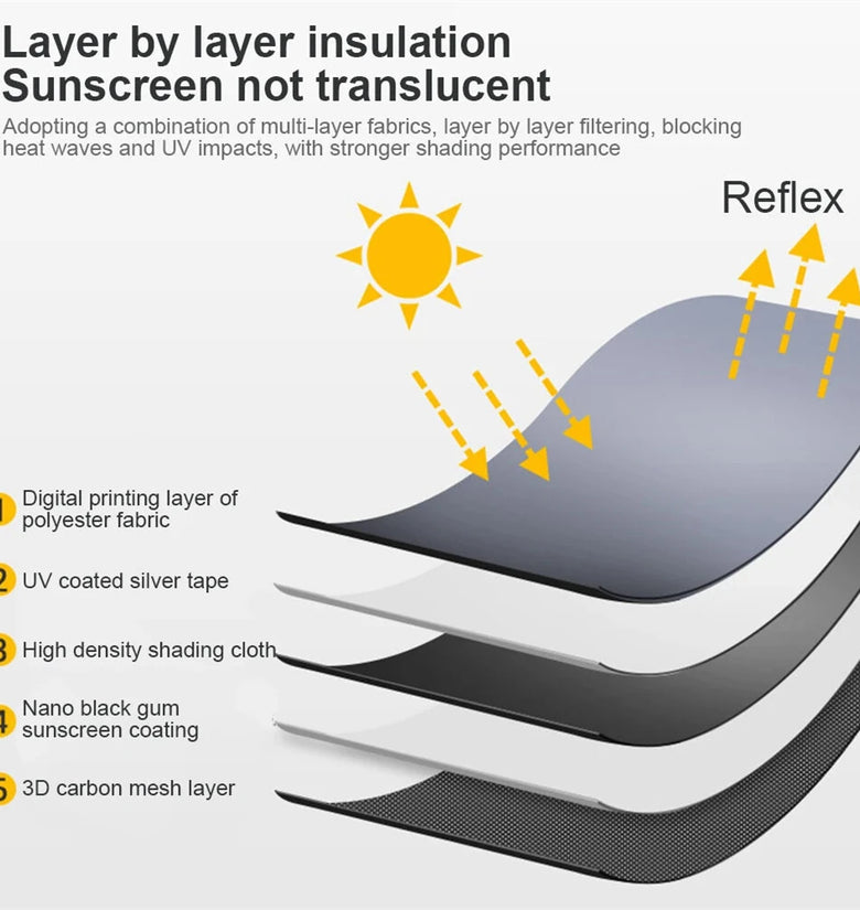 4. Multi-Layer Fabric for Superior Protection: Our car window mesh sunshade cover utilizes a combination of multiple fabrics that filter out layers of heat and UV rays, providing enhanced blackout performance to keep your vehicle cool and protected.