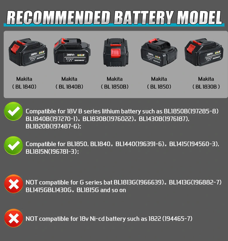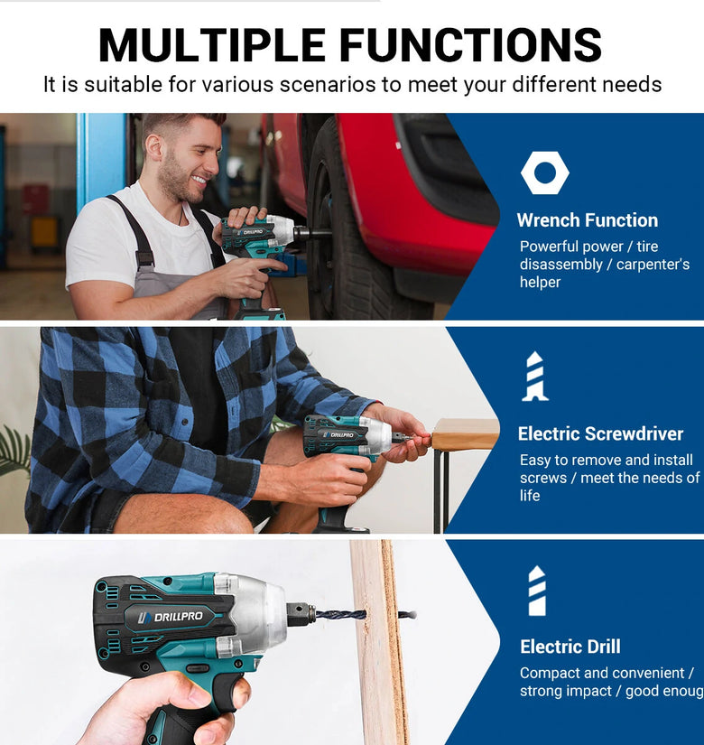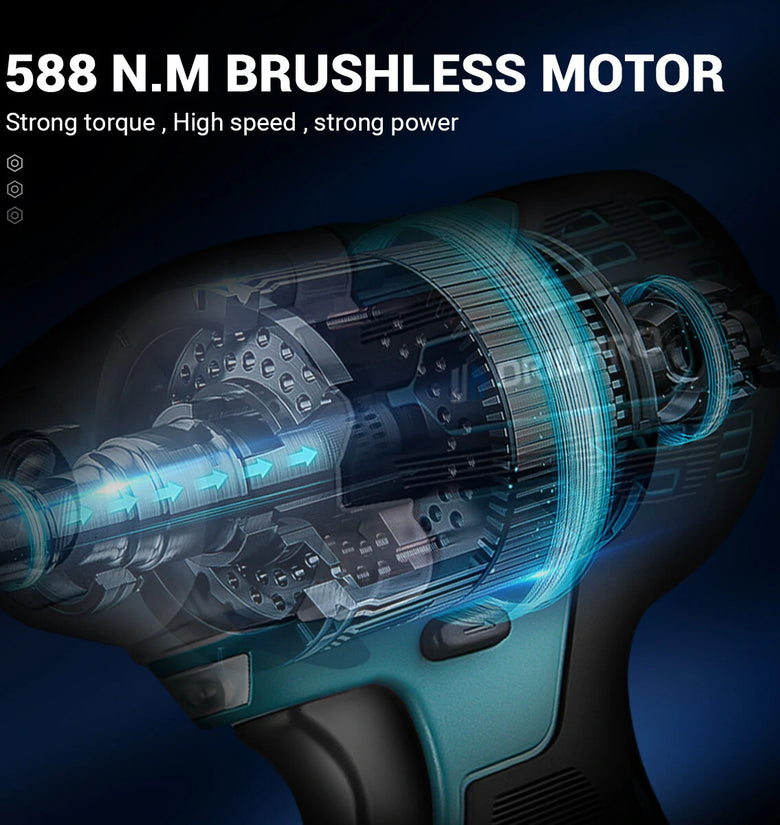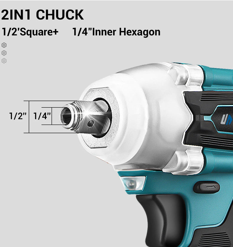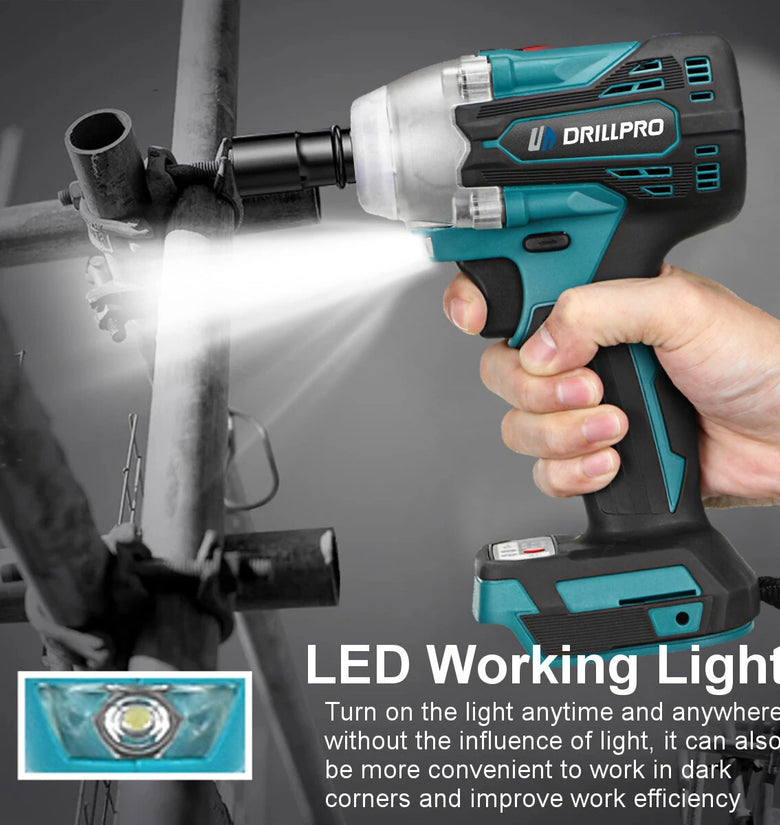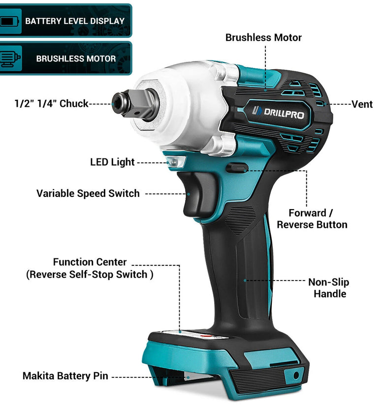 • Drillpro 2 in 1 520N.m Brushless Cordless 1/2 inch Electric Impact Wrench Replacement for Mak 18V Battery