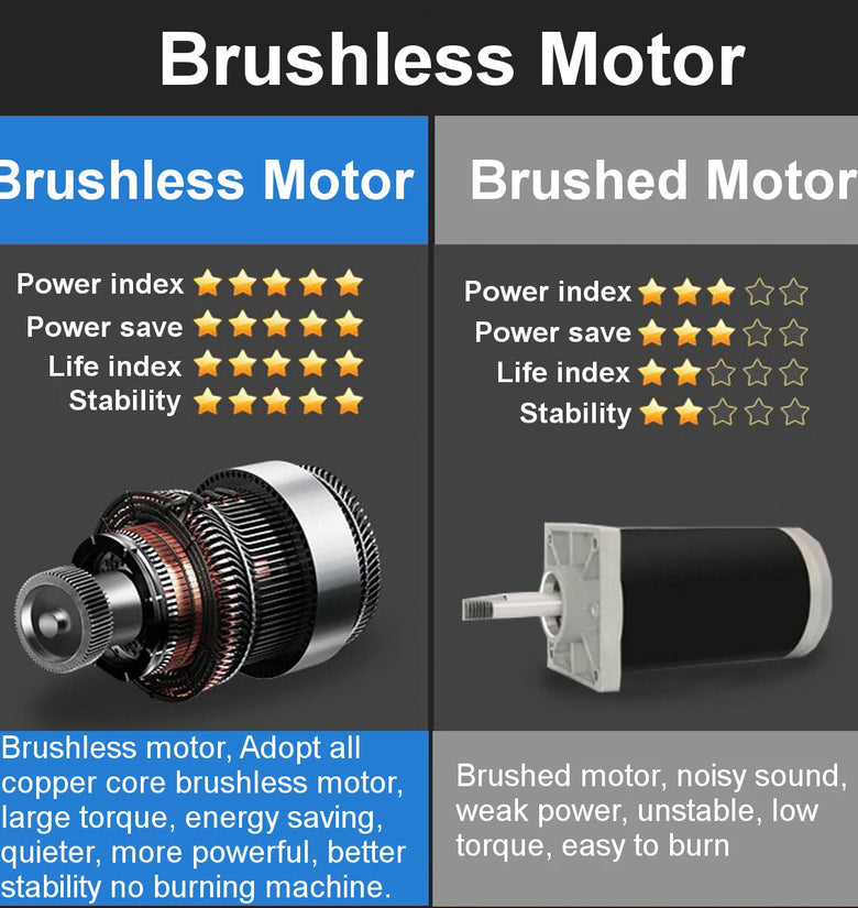 ● The brushless motor does not generate sparks when it is working, and the motor does not wear.