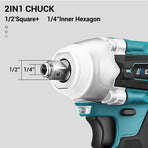 2 in 1 18V 520N.m Li-Ion Brushless Cordless Electric 1/2' Impact Wrench 1/4'Screwdriver Drill Replacement for Mak Battery