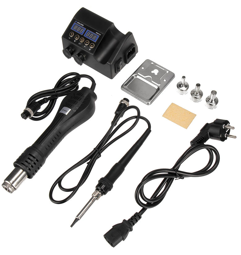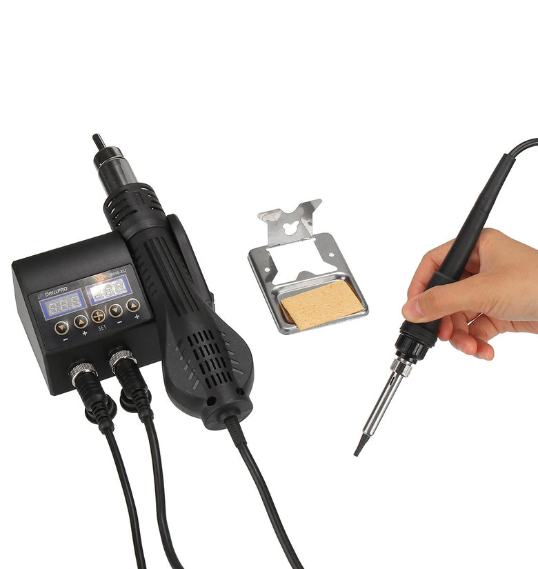 • Drillpro 2 in 1 750W 220V/110V Soldering Station Hot Air Gun Heater LCD Digital Display Soldering Iron Welding Rework Station for Cell-phone BGA SMD PCB IC Repair