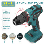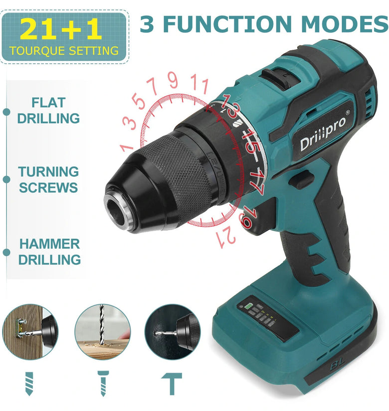 - 21+1 torque selection settings provide the most suitable drilling force and precise control for drilling into wood, metal, plastic, and all screwdriver tasks.