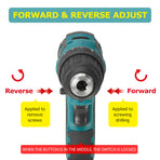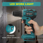 - Cordless power drill has a compact lightweight design, get rid of the trouble of finding a socket for charging with a wired drill.