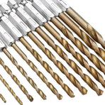 Drillpro DB-T2 13pcs 1.5-6.5mm HSS Titanium Coated 1/4 Inch Hex Shank Twist Drill Bit Set