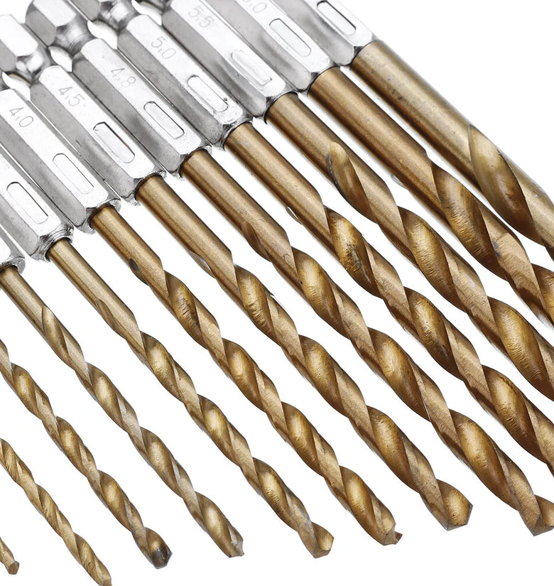 This set of 13 piece titanium nitride coated drill bits lasts six times longer than standard drill bits.