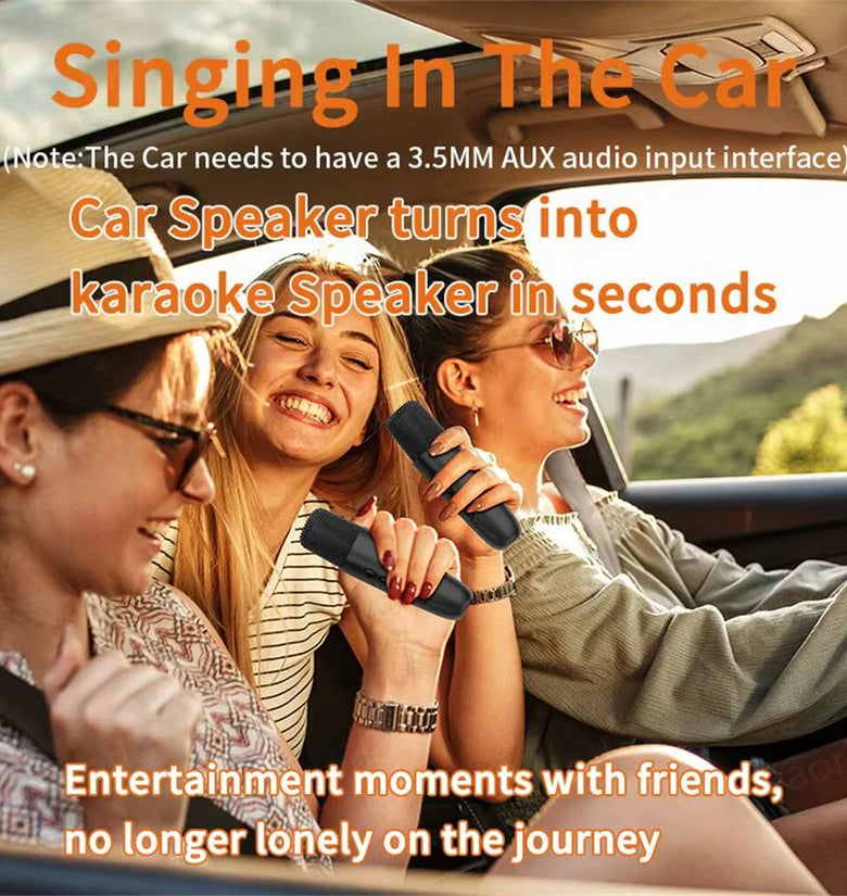 5. Support use in Cars, allowing the car speakers to be upgraded to the karaoke speaker system to sing with wireless microphones, increasing driving pleasure and making the journey no longer lonely.(Note:The Car needs to have a 3.5MM AUX audio input interface)