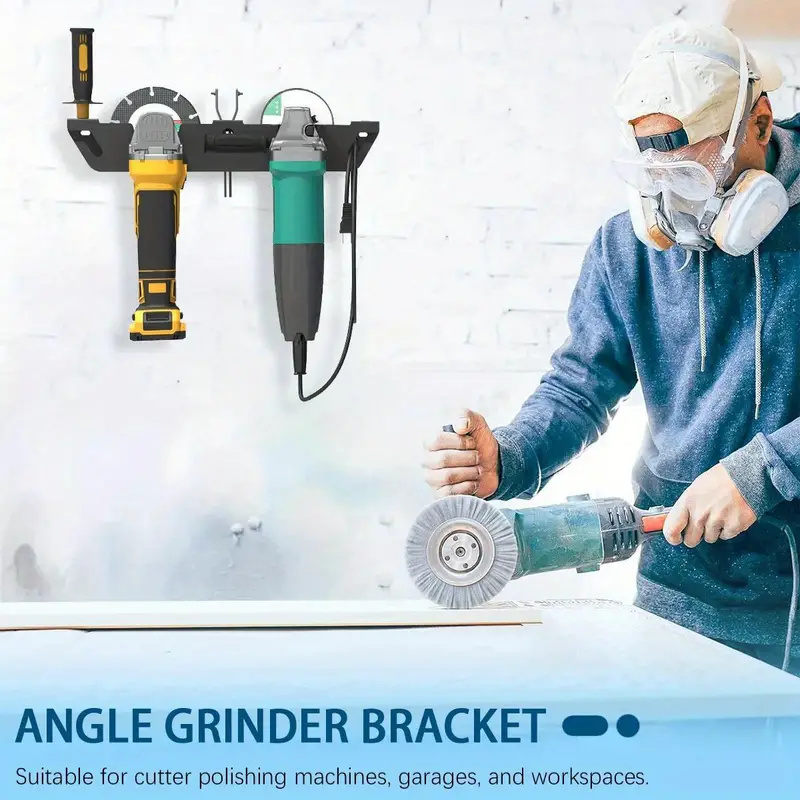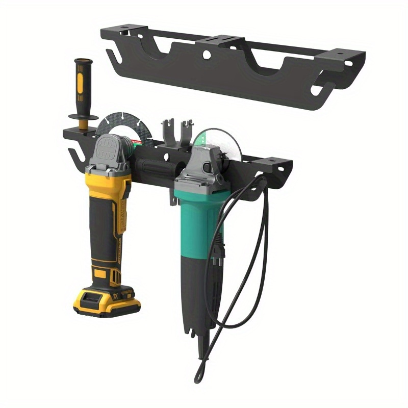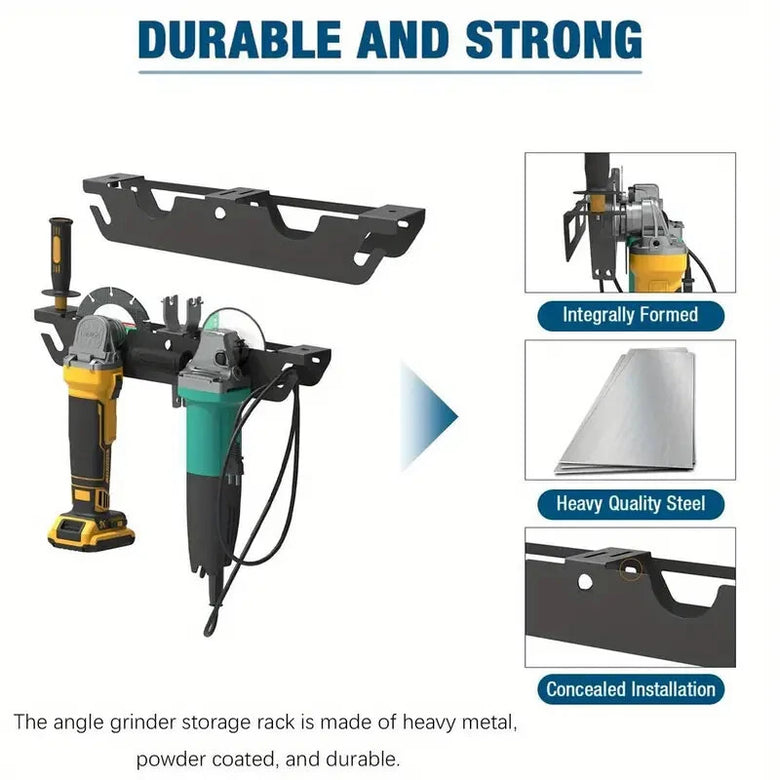 • Dual Bay Metal Angle Grinder Rack Stand Wall Mount Storage with Cord Hanger Easy Assembly Holds 2 Grinders Classic Design Robust Metal Construction