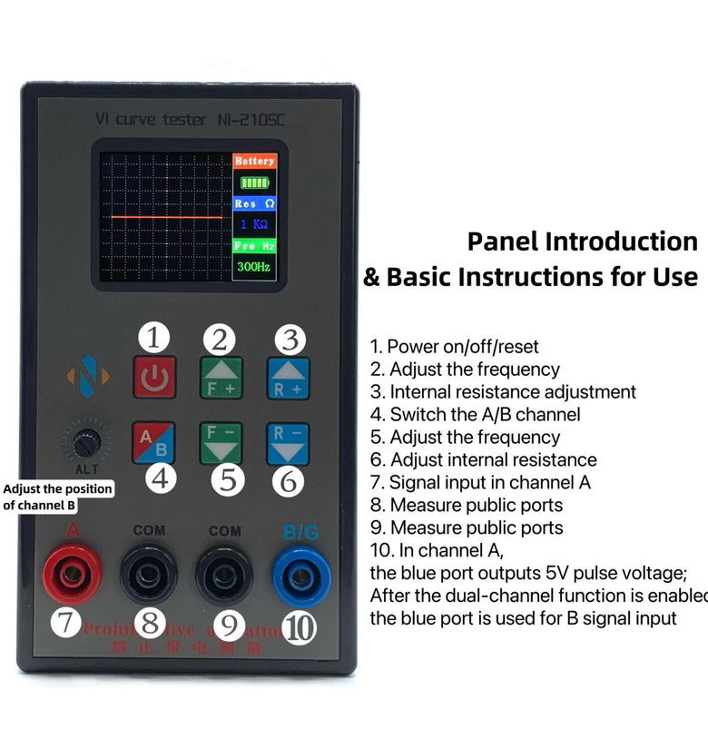 • Dual Channel Analog Signal Analyzer ASA VI Curve Tester 4V Adjustable Resistance 50R-7K Frequency 20Hz-15kHz TFT Screen 3000mAh Battery Type-C Charging