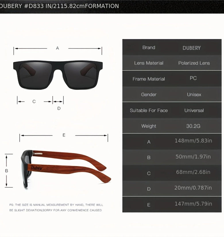1. Lightweight Comfort: These sunglasses offer a comfortable fit for all-day wear.2. Polarized Lenses: Experience crystal-clear vision with polarized lenses that reduce glare and enhance contrast.3. UV400 Protection: Shield your eyes with UV400-rated lenses, offering full protection against harmful UVA/UVB rays.4. Versatile Style: Square mirror design blends retro charm with modern style, perfect for any occasion.5. Long-lasting Frame Material: Crafted with robust wooden + plastic, these sunglasses are designed to withstand daily wear and tear.