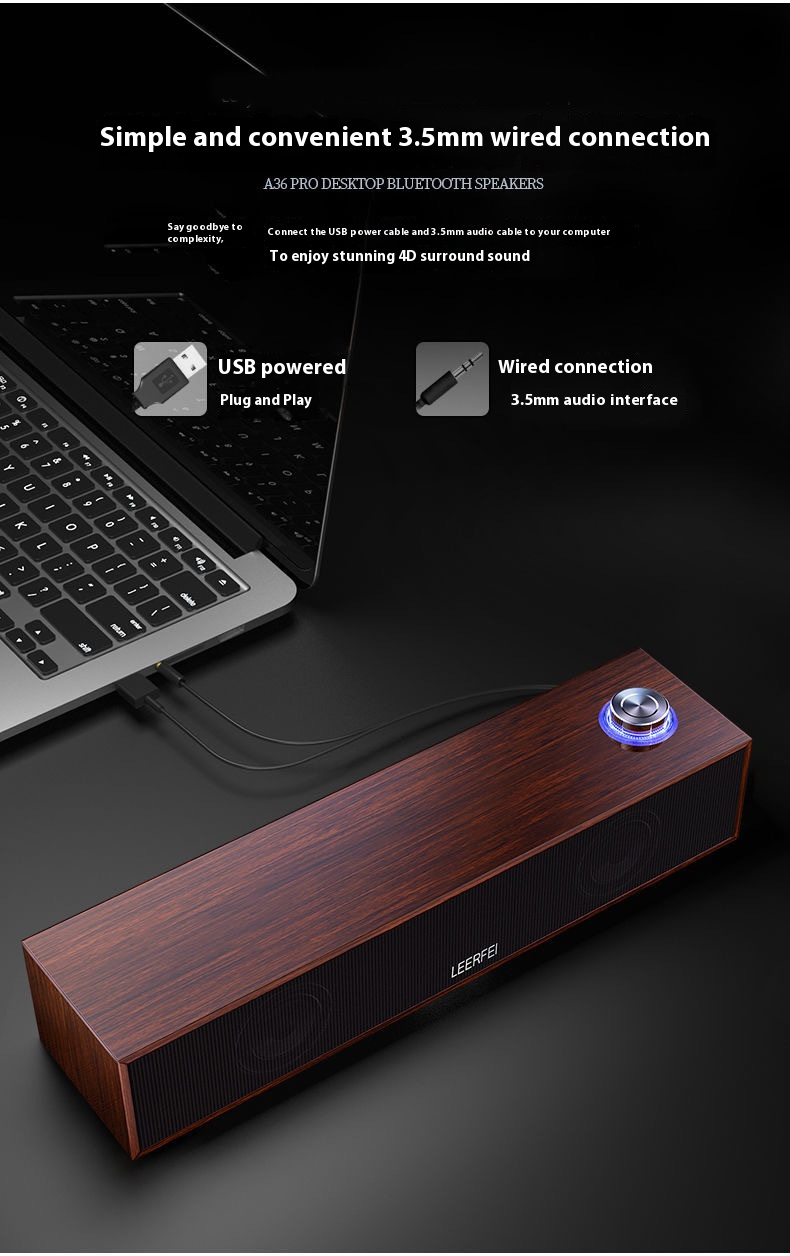 Easily connect to a wide range of devices including laptops, TVs, smartphones, and tablets using the universal 3.5mm AUX input. The wired connection ensures stable signal transmission for uninterrupted sound.