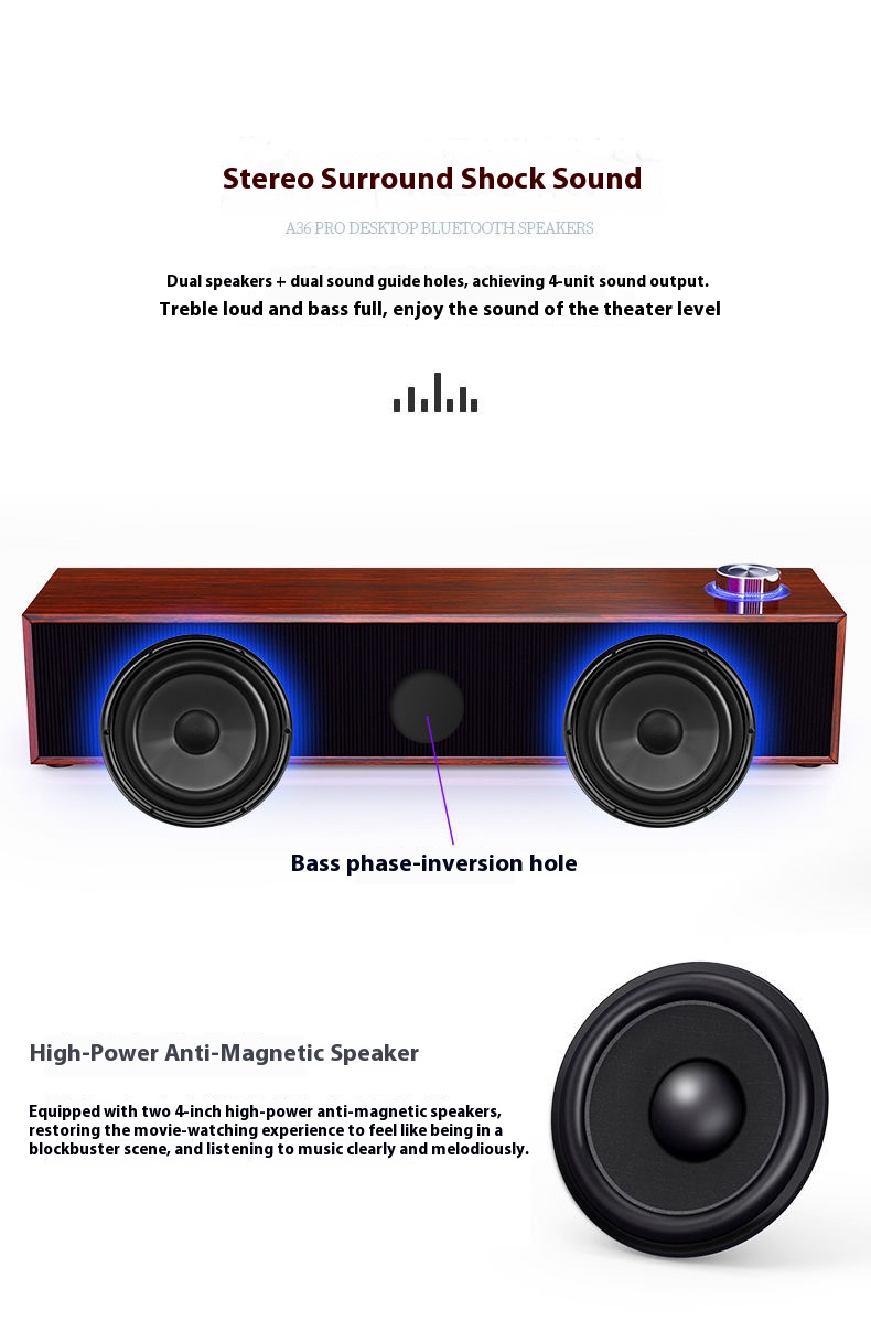 Equipped with two high-performance speakers, this soundbar delivers clear audio with amplified output, ensuring your favorite tunes and movies come alive with impactful sound. Perfect for any home or desktop setup.