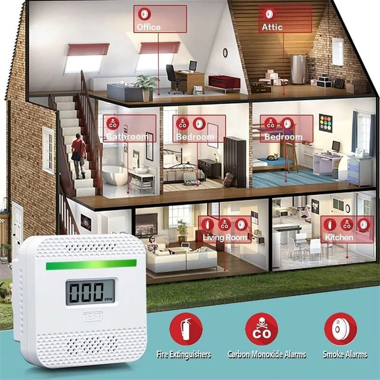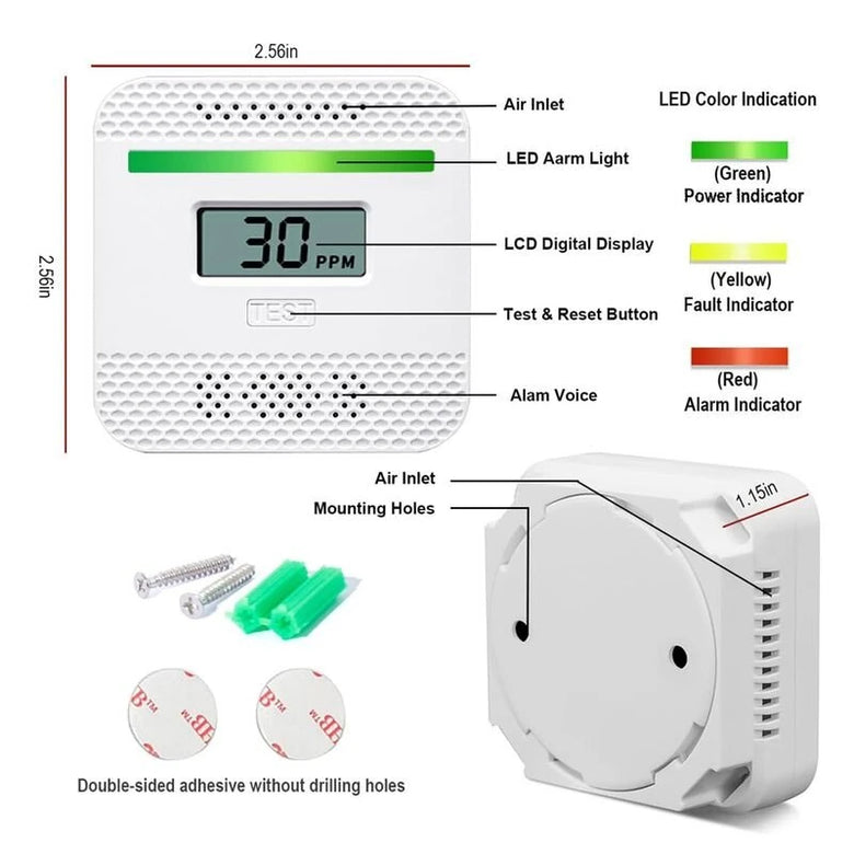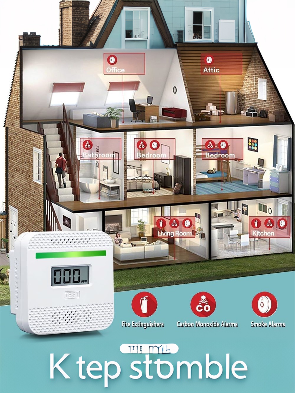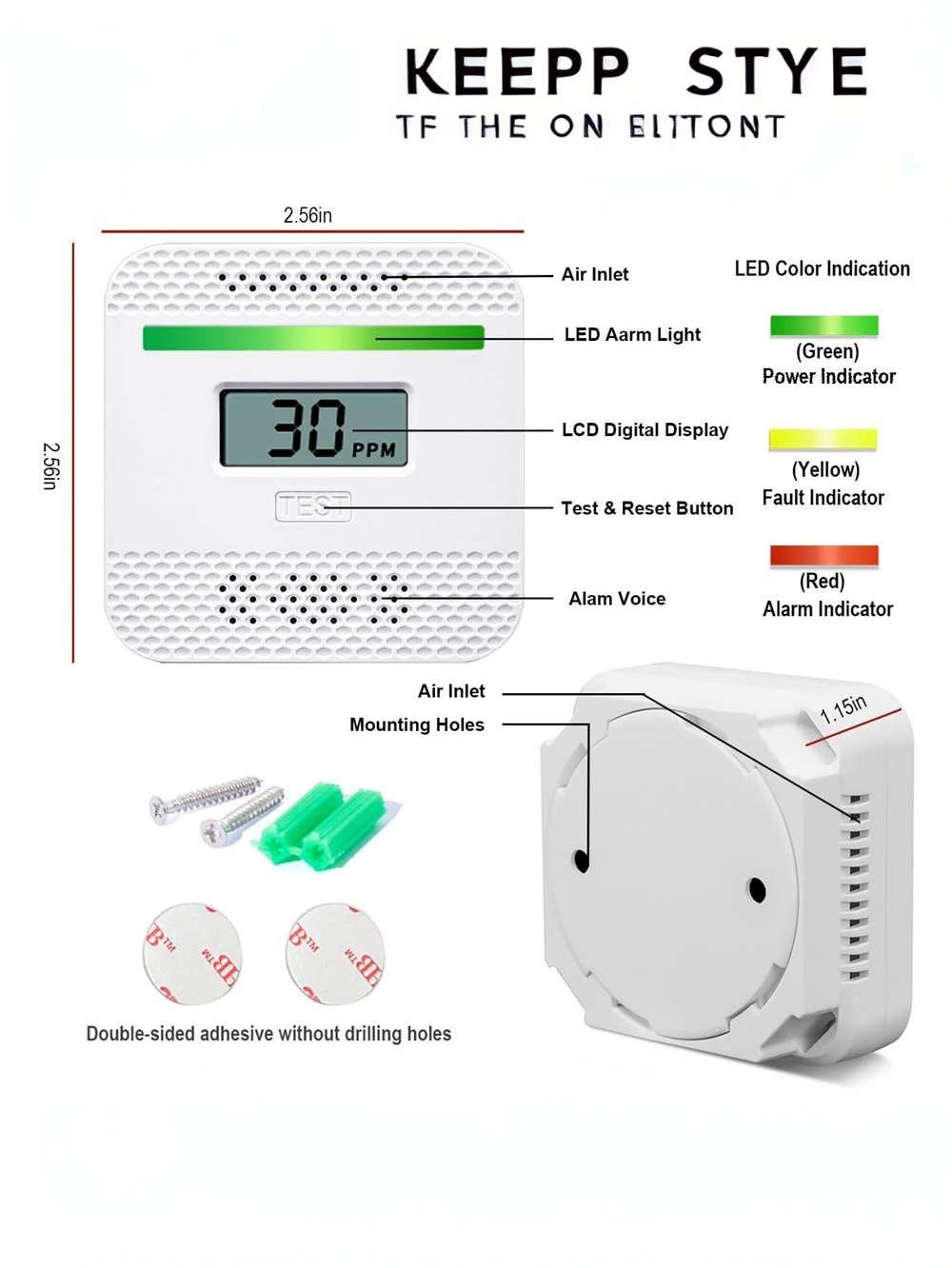 3.Simple Installation: Powered by 2 AAA batteries (not included), this CO alarm can be installed quickly without the need for wiring. Ideal for spaces like bedrooms, kitchens, offices, and more.