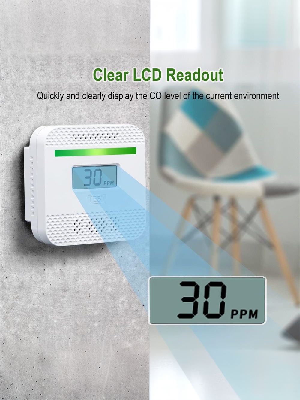 1.Fast and Accurate Detection: Equipped with a high-precision electrochemical sensor, this CO detector promptly identifies dangerous carbon monoxide levels and triggers a loud 85+ dB alarm to ensure timely action and safety.