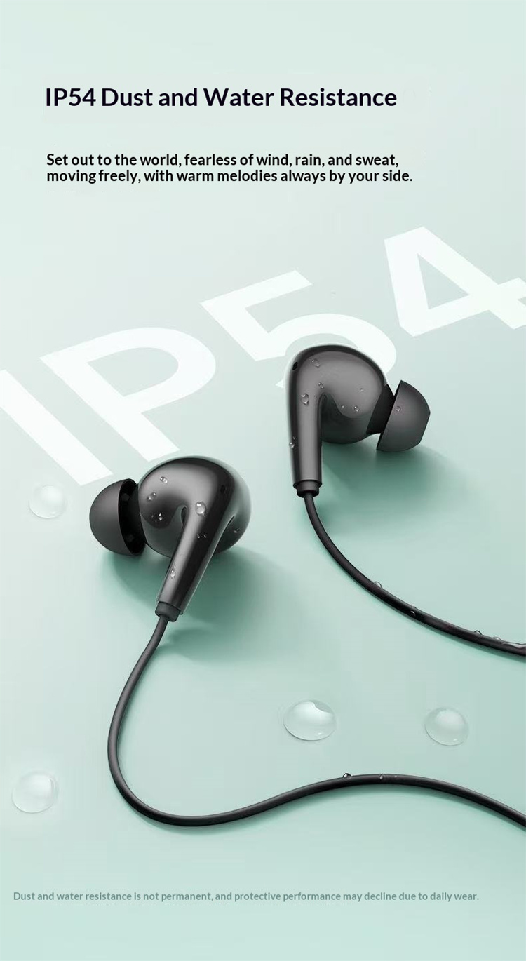 Built to withstand challenges, the IP54 rating ensures that these earbuds resist water splashes and dust for worry-free use in outdoor activities, whether in rain or during a workout. Ideal for your active lifestyle, these earphones prove to be highly reliable companions.