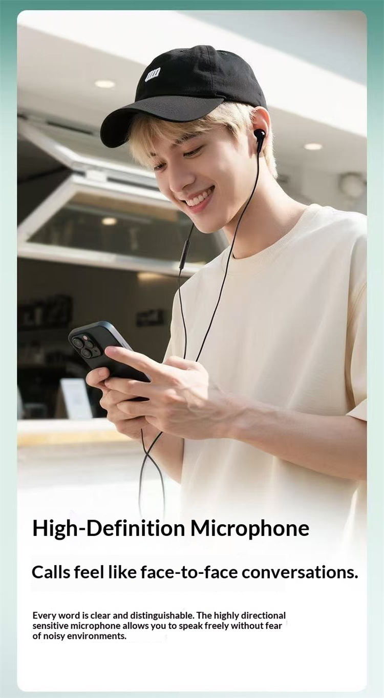 Equipped with a highly-sensitive HD microphone, these earphones ensure crystal-clear voice transmission for phone calls or virtual meetings. It offers precise voice capture, minimizing background noise for seamless communication.