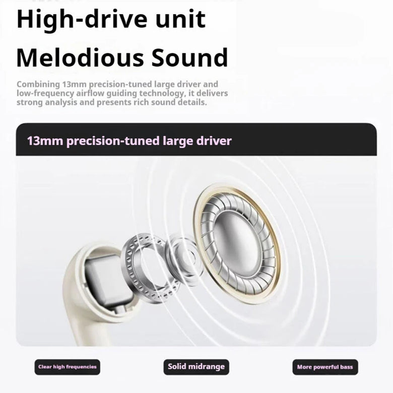 2. 13mm Fine-Tuned Large Unit: Engineered with a large dynamic driver to deliver a balanced, rich soundscape, from deep bass to detailed treble tones.