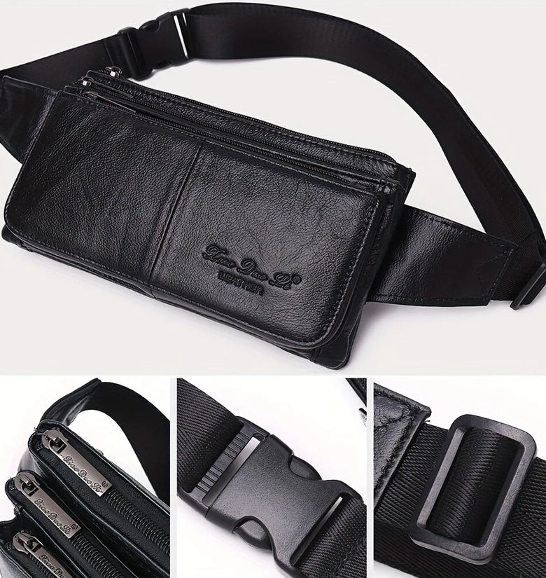 Features: 1. Multi-functional design with multiple compartments for easy organization. 2. Long-lasting genuine leather ensures longevity and a premium feel. 3. Ideal for sports, travel, or daily use, keeping essentials secure and accessible. 4. Lightweight and compact, perfect for on-the-go convenience. 5. Stylish aesthetic that complements any active lifestyle.
