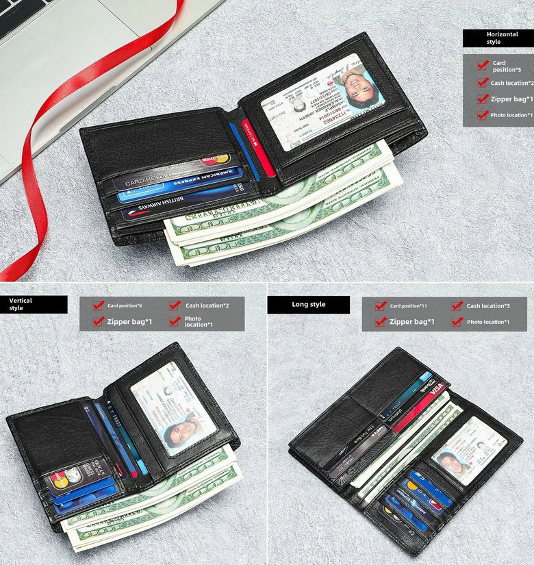 1. High-quality material: Made of genuine leather, providing a wearable and long-lasting wallet.
