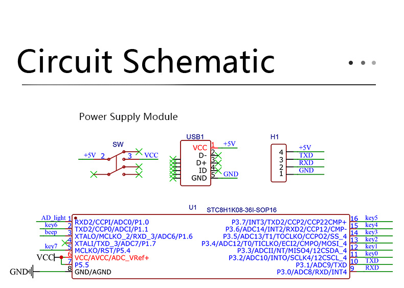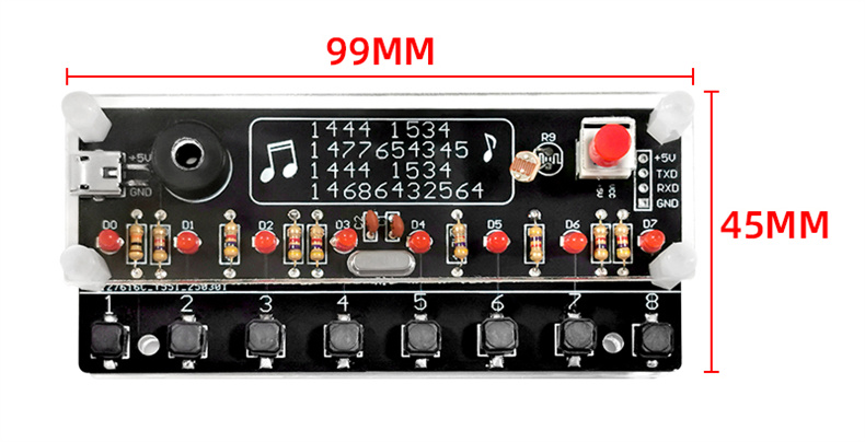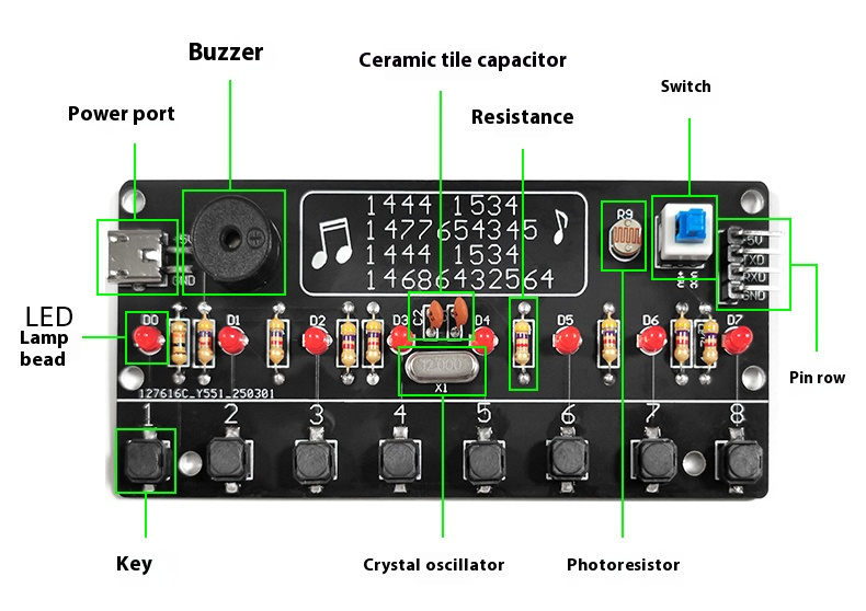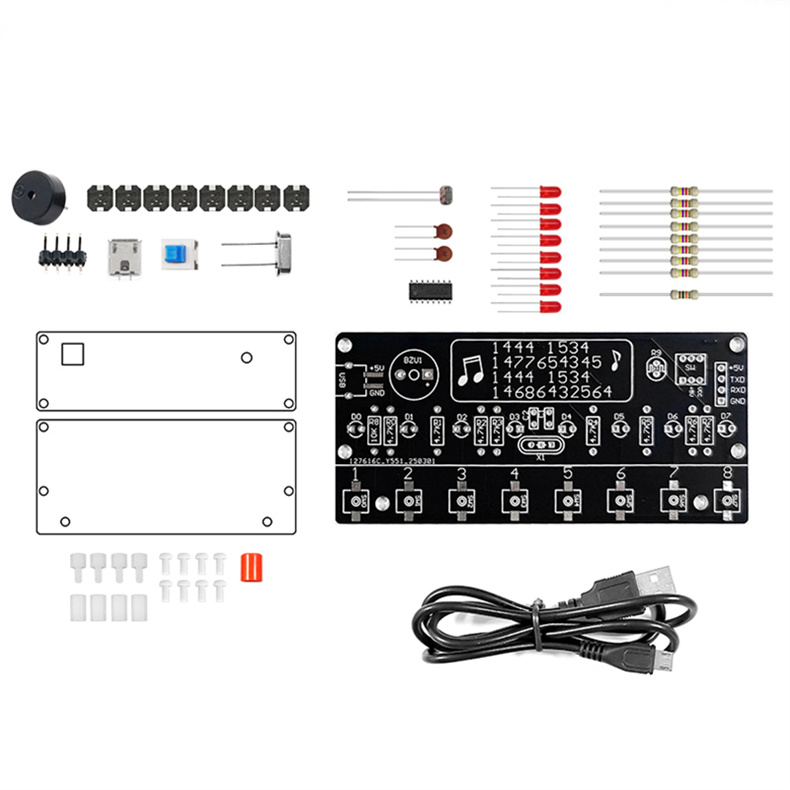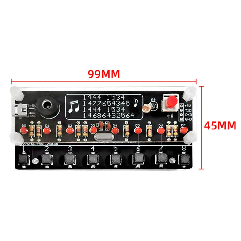 • Electronic Piano Kit 8-key Interface Three-tone 14 built-in Songs LED Lighting Effect 5V Power Supply DIY Music Module Learning Kit