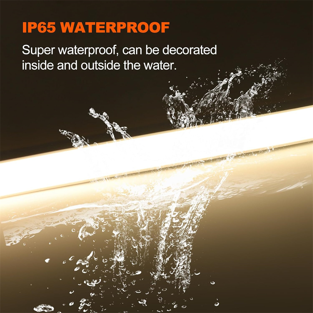 - Waterproof Protection: IP65 waterproof rating allows the strip to work both indoors and outdoors, ensuring versatility in various settings. Note: The wiring position and the end of the strip are not waterproof, please do waterproof measures if used outdoors.