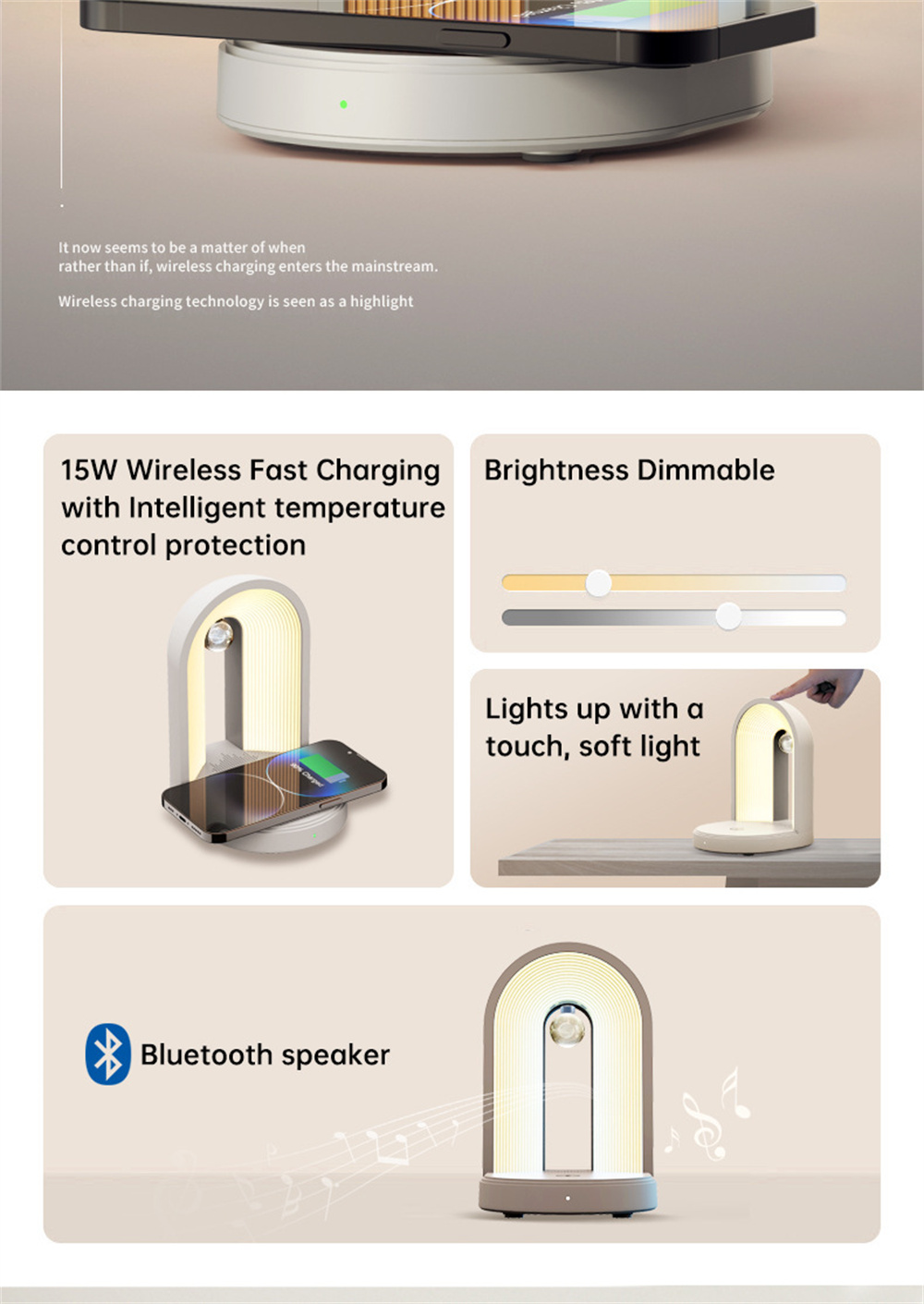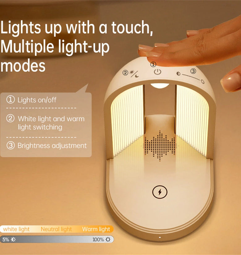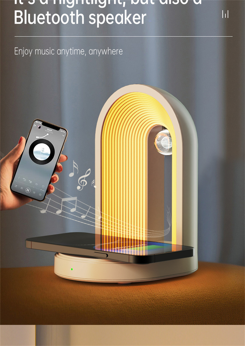 - Versatile 3-in-1 design combines night light, wireless charger, and Bluetooth speaker for convenience.