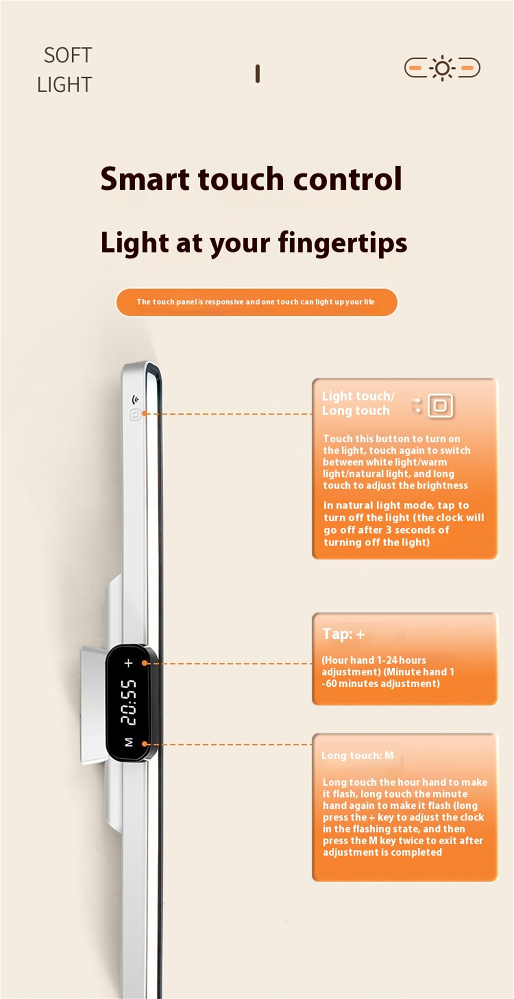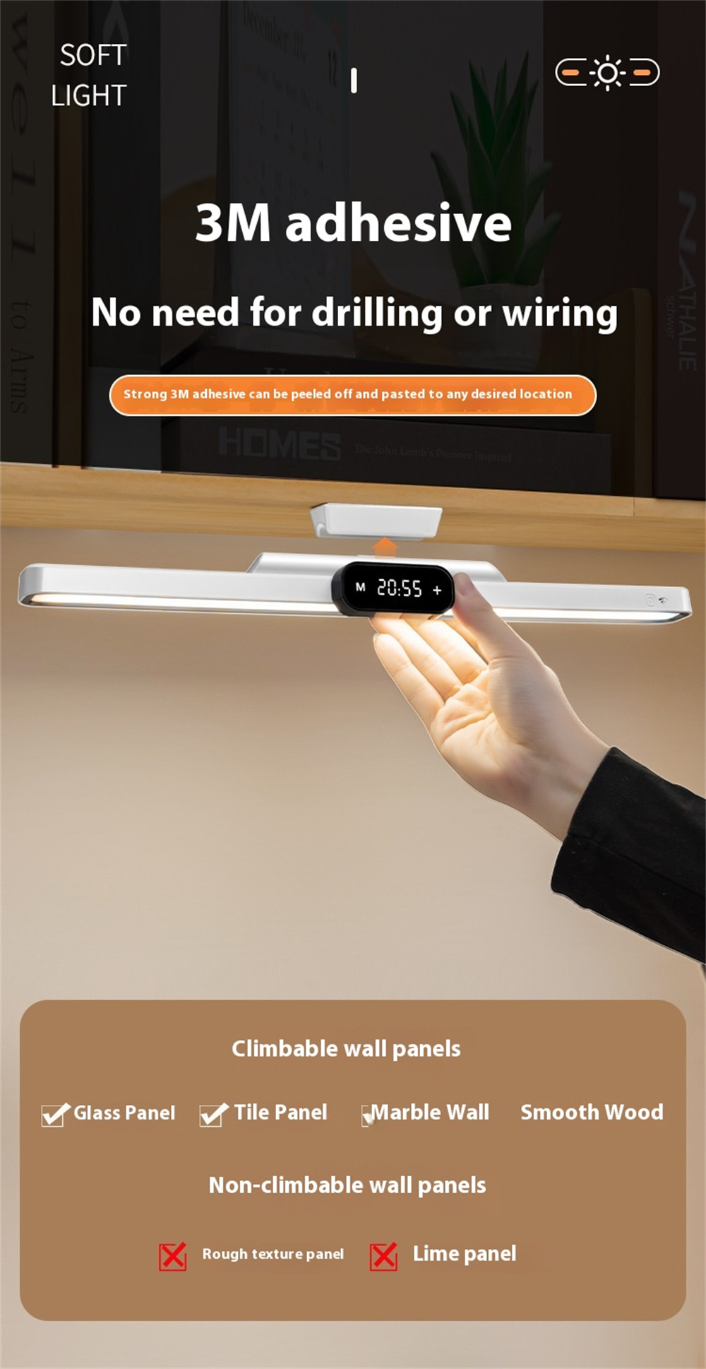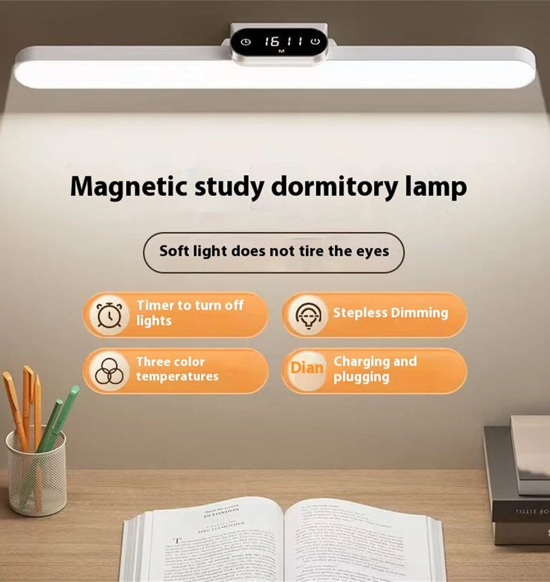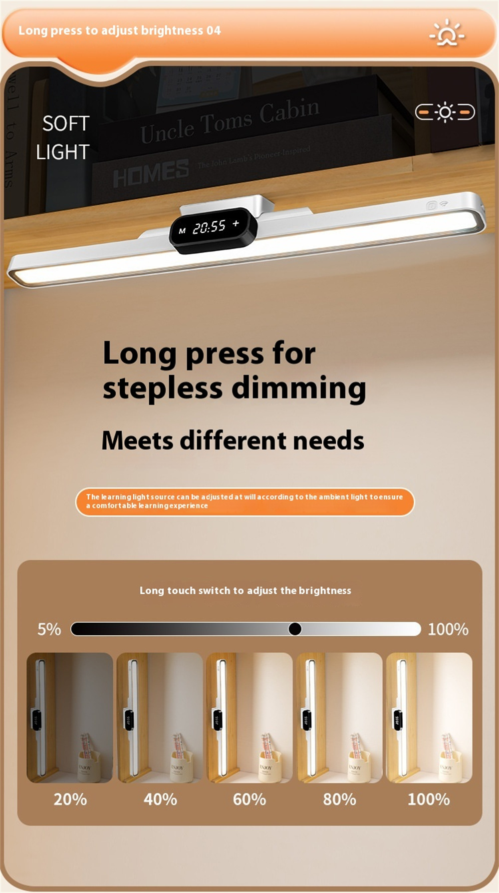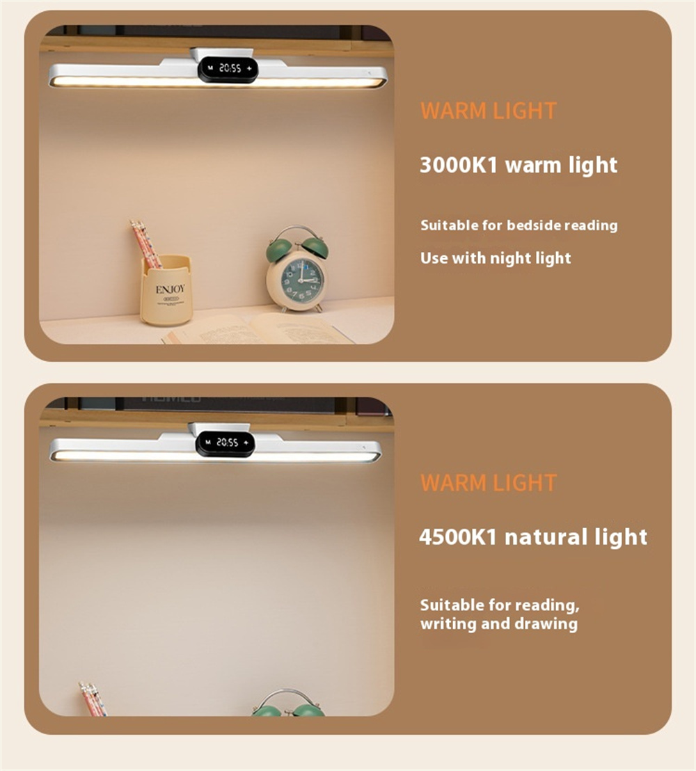 • Elfeland 40cm Rechargeable LED Desk Clock Lamp with Remote Eye-Caring Light Magnetic Mount Dimmable 3 Color Temperatures Timer Function