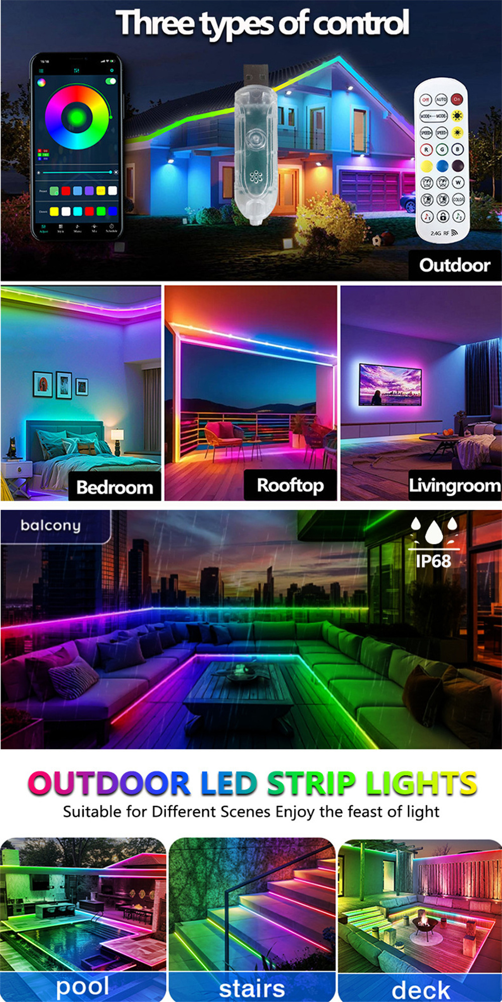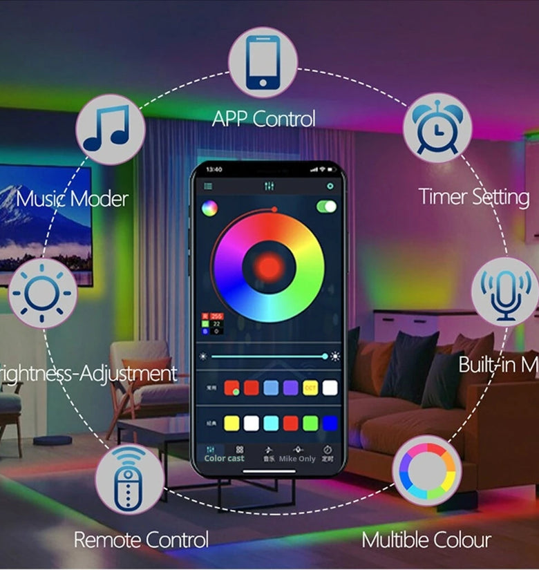 - Smart APP & Remote Control: Control your lights via 2.4G Bluetooth APP or included remote. Adjust colors, brightness, and modes from your phone or with the convenient handheld remote.