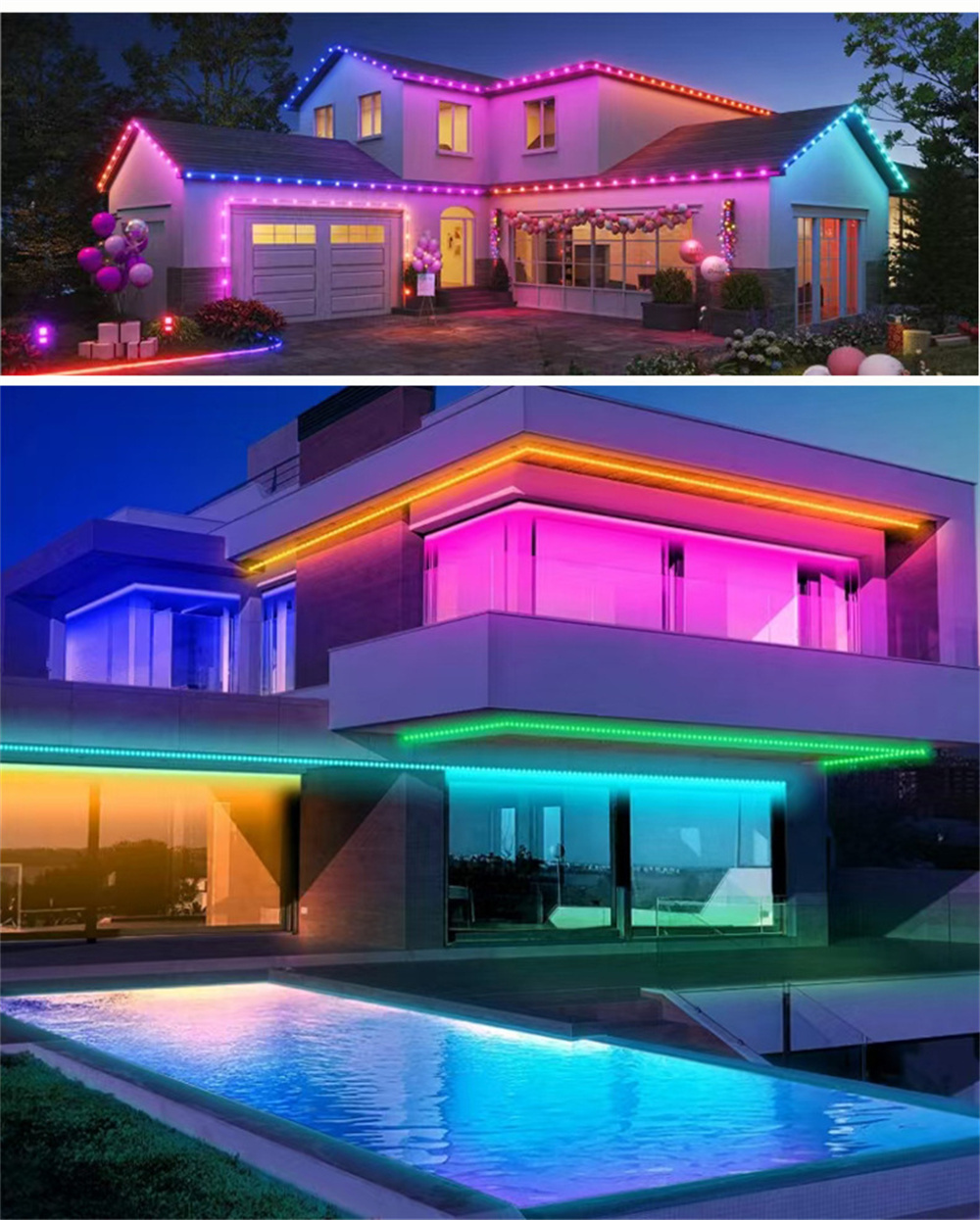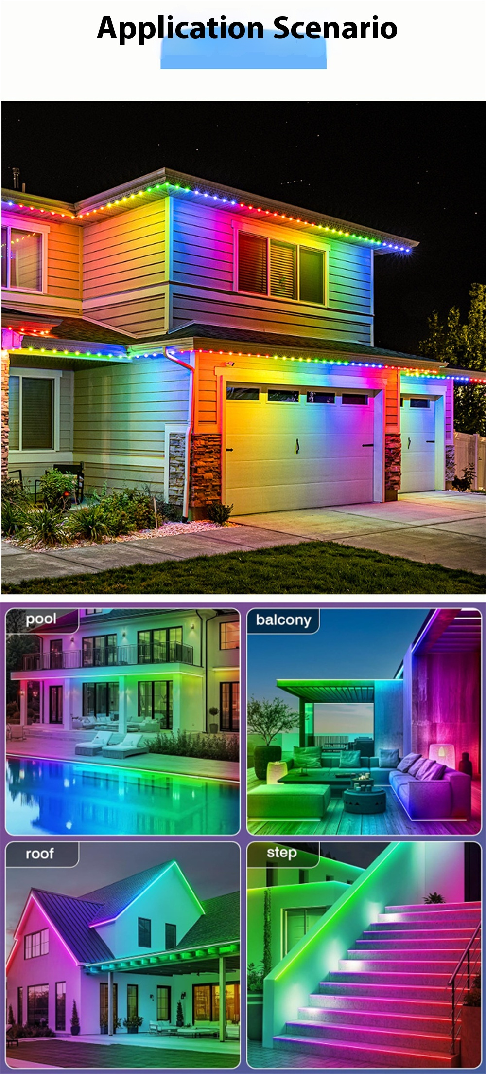 - Vivid RGBIC Color Technology: Features advanced RGBIC chips that display multiple colors simultaneously on one strip. Enjoy smooth color transitions and rich lighting effects throughout your space.