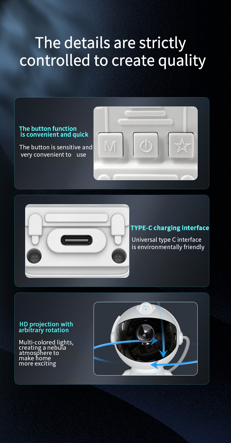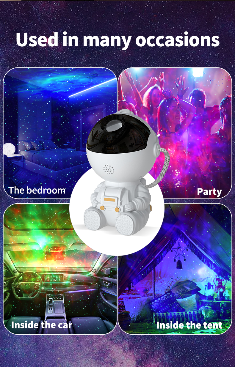 - Versatile Usage Across Multiple Settings: Perfect for various occasions, the Astronaut Nebula Projector can be used in bedrooms, parties, cars, and tents. Its compact design and mesmerizing light effects make it a versatile addition to any space, creating enchanting environments and unforgettable experiences wherever you go.