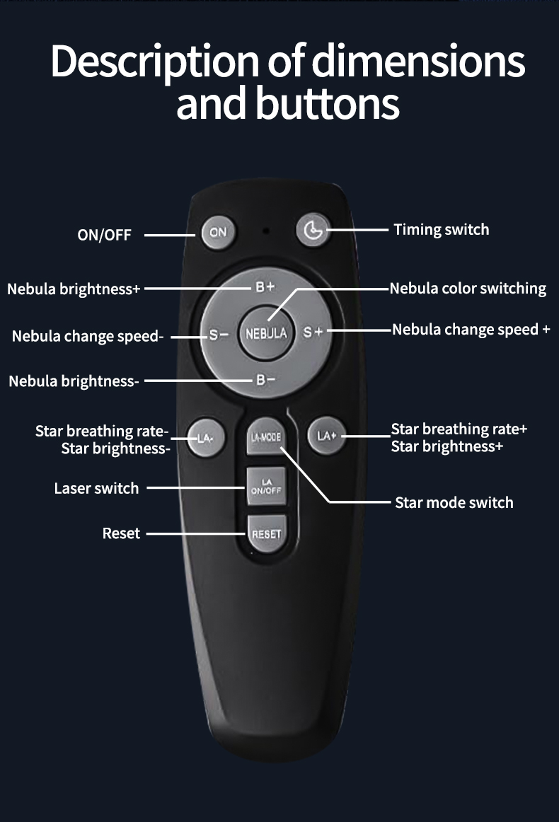 - Eight Dynamic Lighting Modes: Immerse yourself in a stellar experience with eight unique lighting modes offering stunning combinations. Transform any space into a mesmerizing wonderland with a variety of nebula and star patterns that captivate the imagination and foster a relaxing atmosphere.