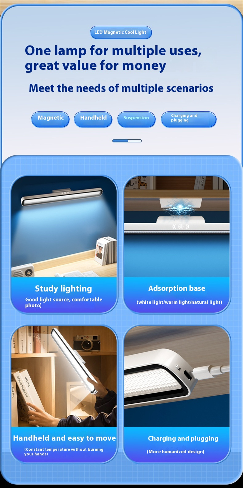• Elfeland LED Desk Lamp USB Rechargeable Light Stepless Dimming Table Lamp Hanging Magnetic Bedroom Table Reading Rechargeable Night Light