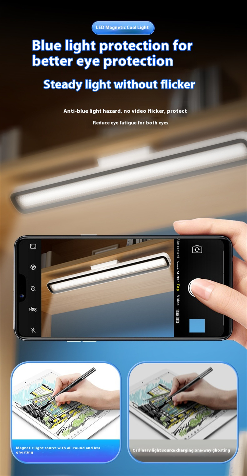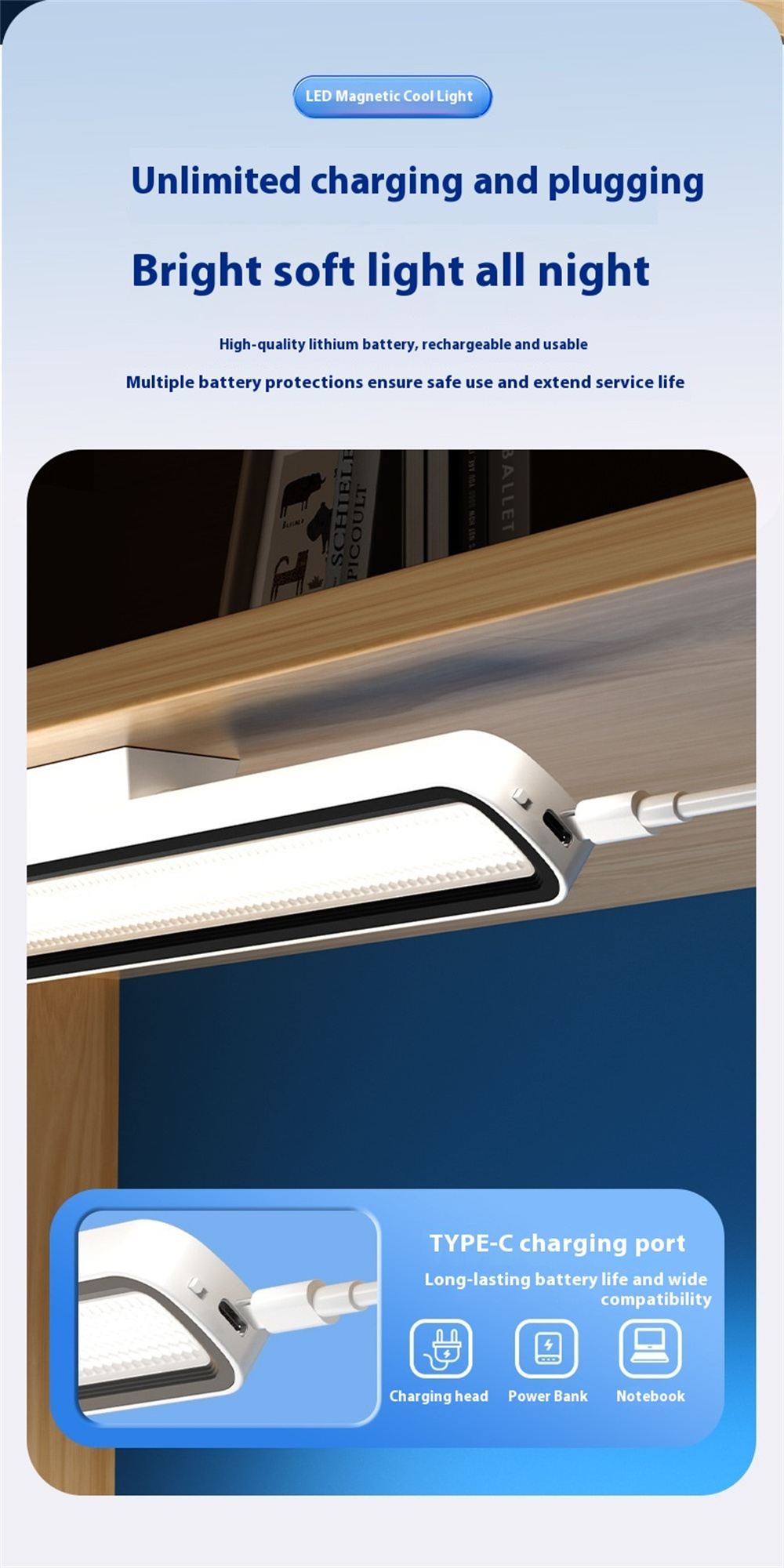 Elfeland LED Desk Lamp USB Rechargeable Light Stepless Dimming Table Lamp Hanging Magnetic Bedroom Table Reading Rechargeable Night Light