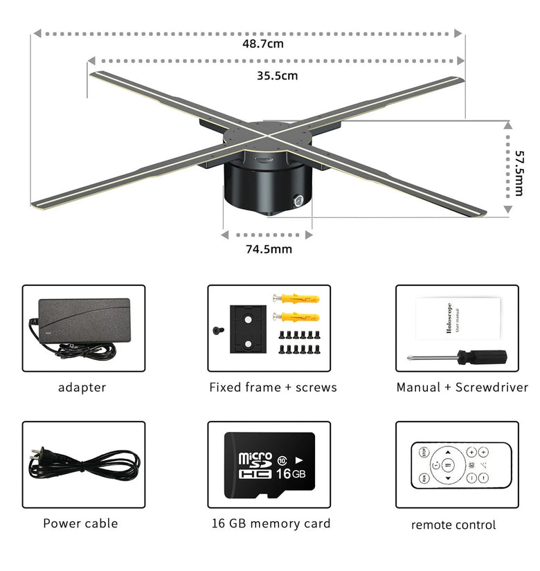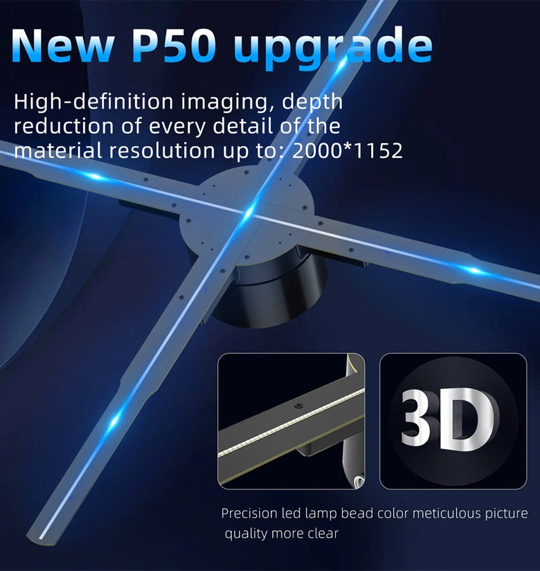• Elfeland P50 Wifi Holographic Fan 3D Advertising Machine 576 LED Sign Neon Smart HD Player Support Video Picture Logo Holographic Light EU Plug