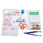 Bright red bag and striking cross symbol makes the kit easy to find in an emergency case.
