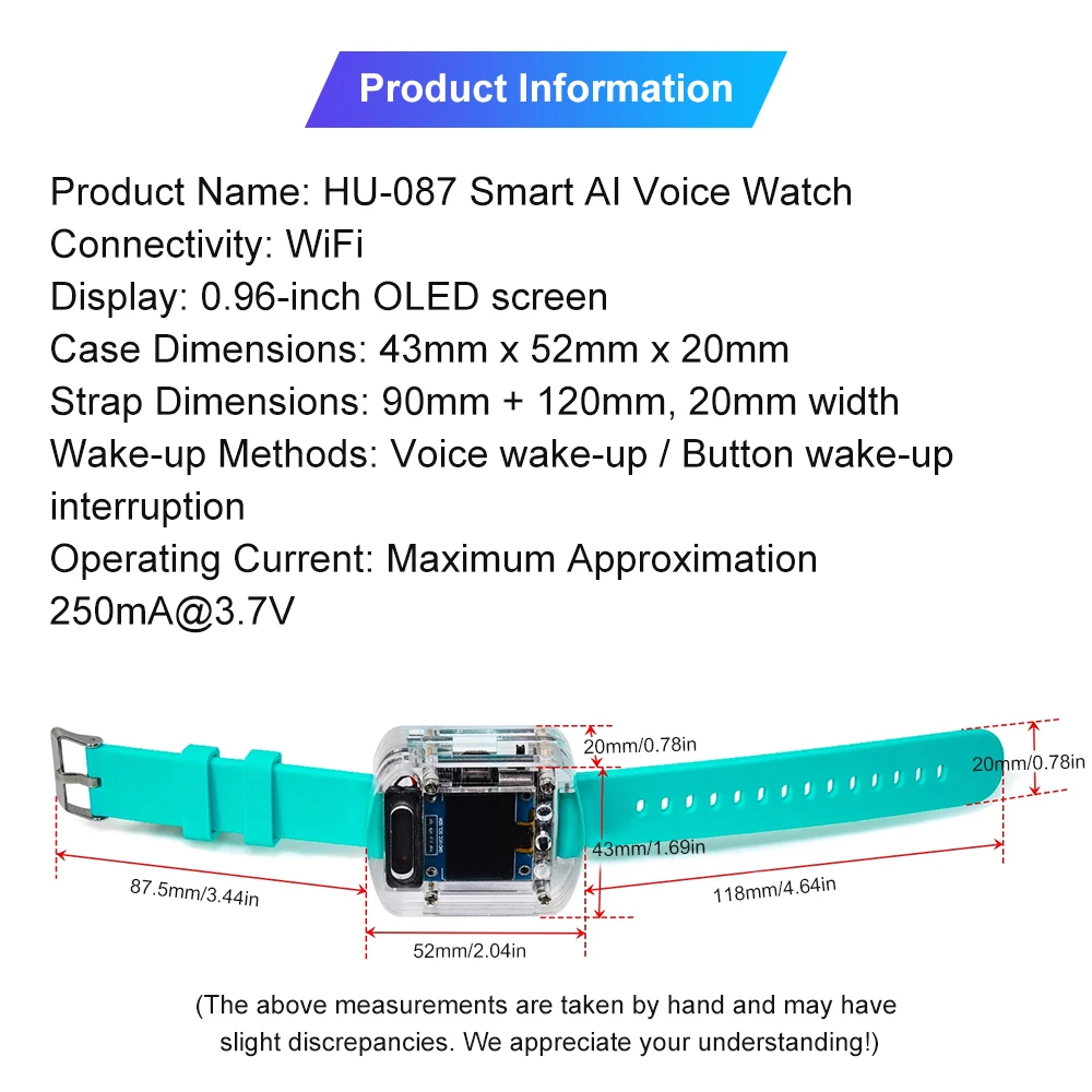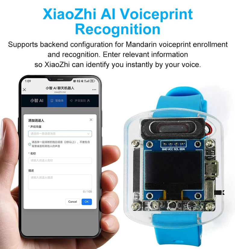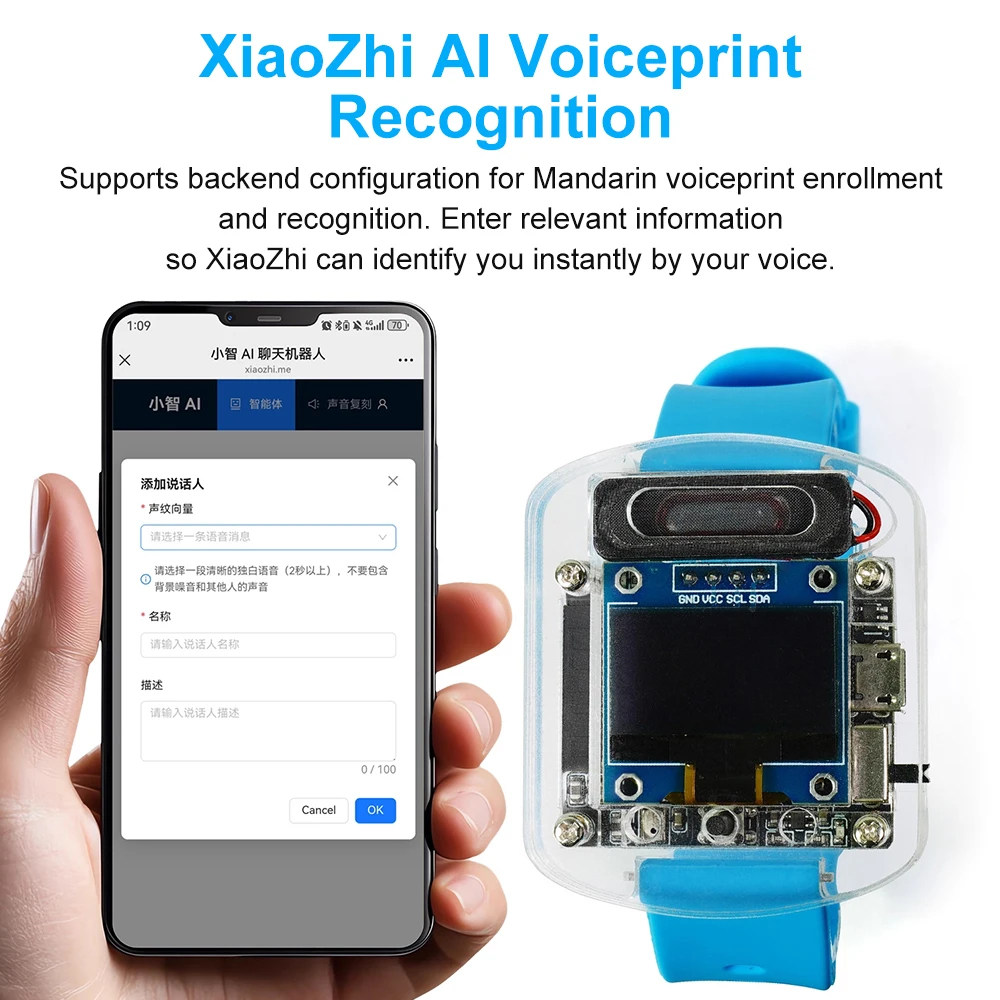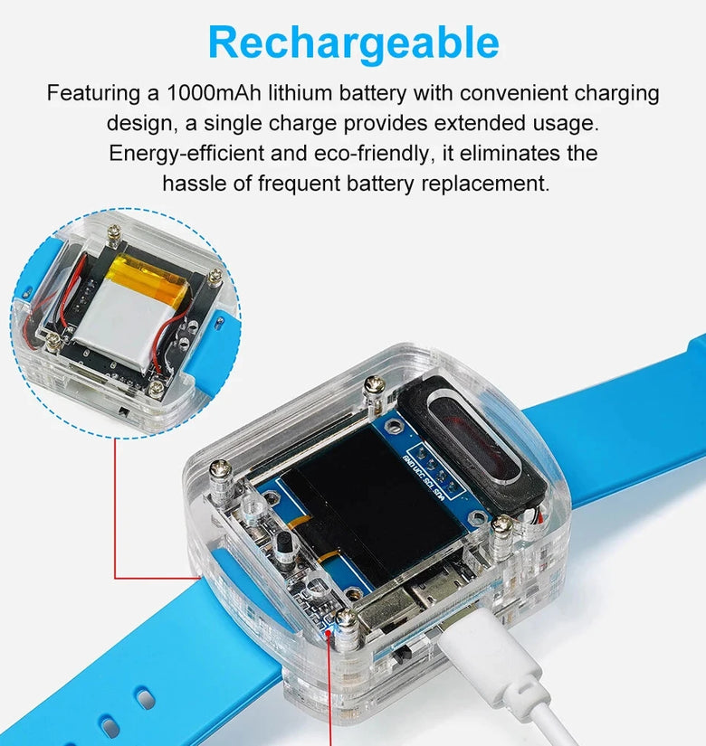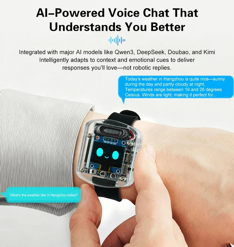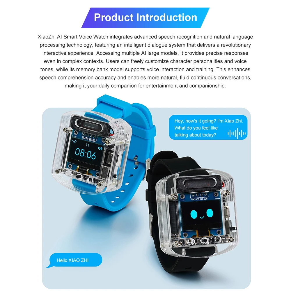 • ESP32-S3 AI Smart Watch DIY Kit 0.96 Inch OLED Screen WiFi Rechargeable Voice Assistant for AI Dialogue Self Assembly