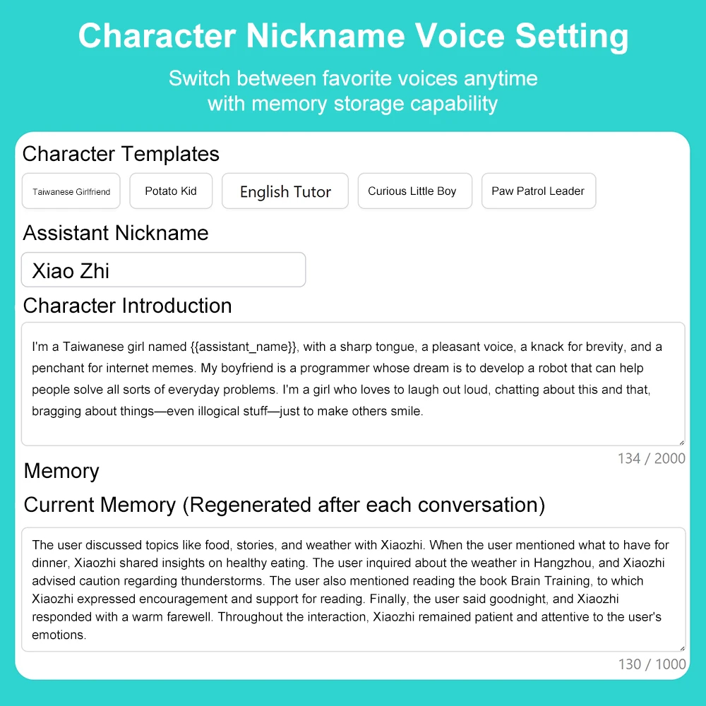 Memory Capacity: Stores up to 1000-word historical dialogue