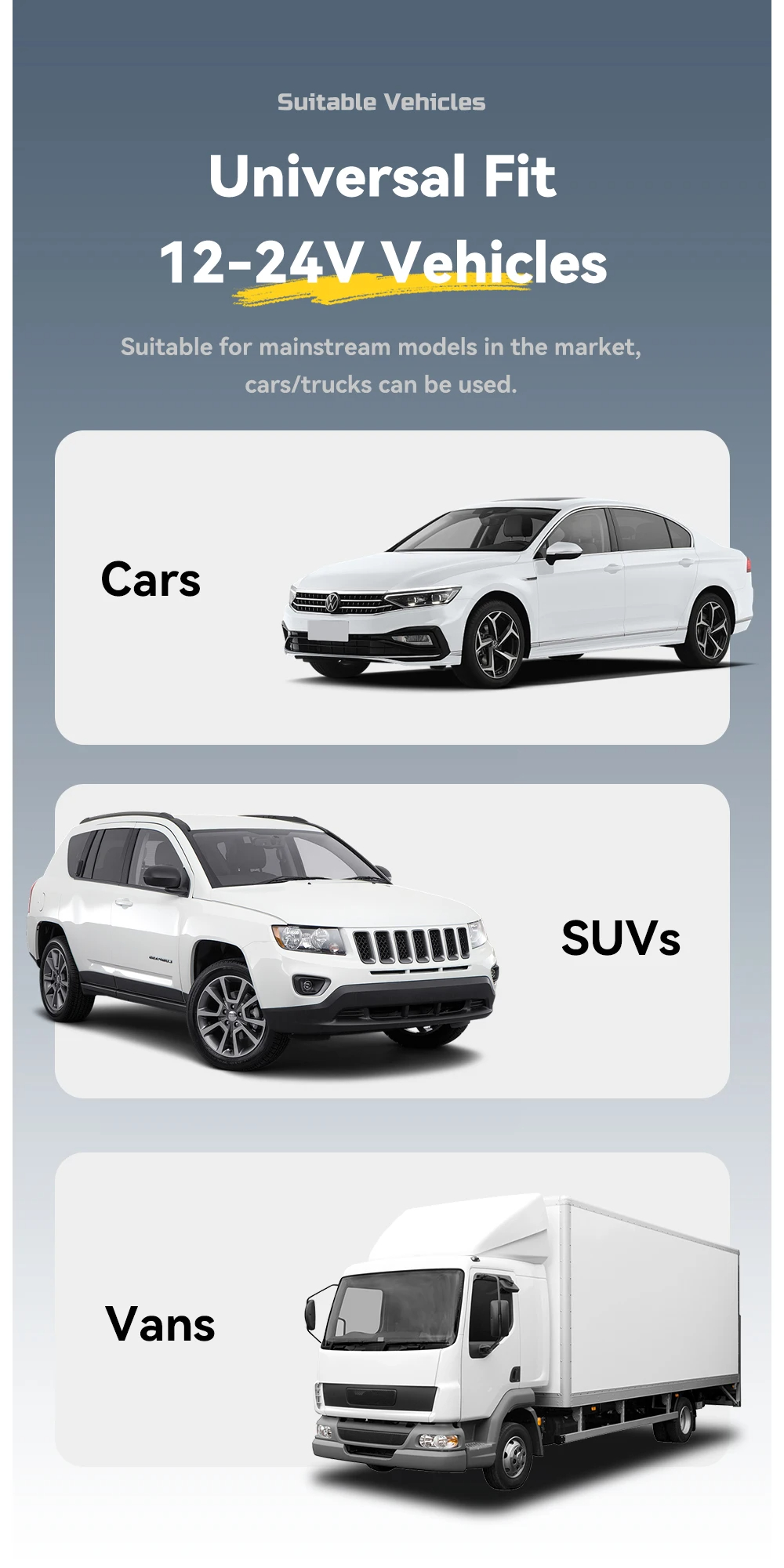 2. Wide Compatibility: Compatible with 12-24V vehicles, including cars, SUVs, andvans. Suitable for multiple devices like phones and tablets supporting PD3.0, QC3.0, Huawei FCP, Samsung AFC, and more.