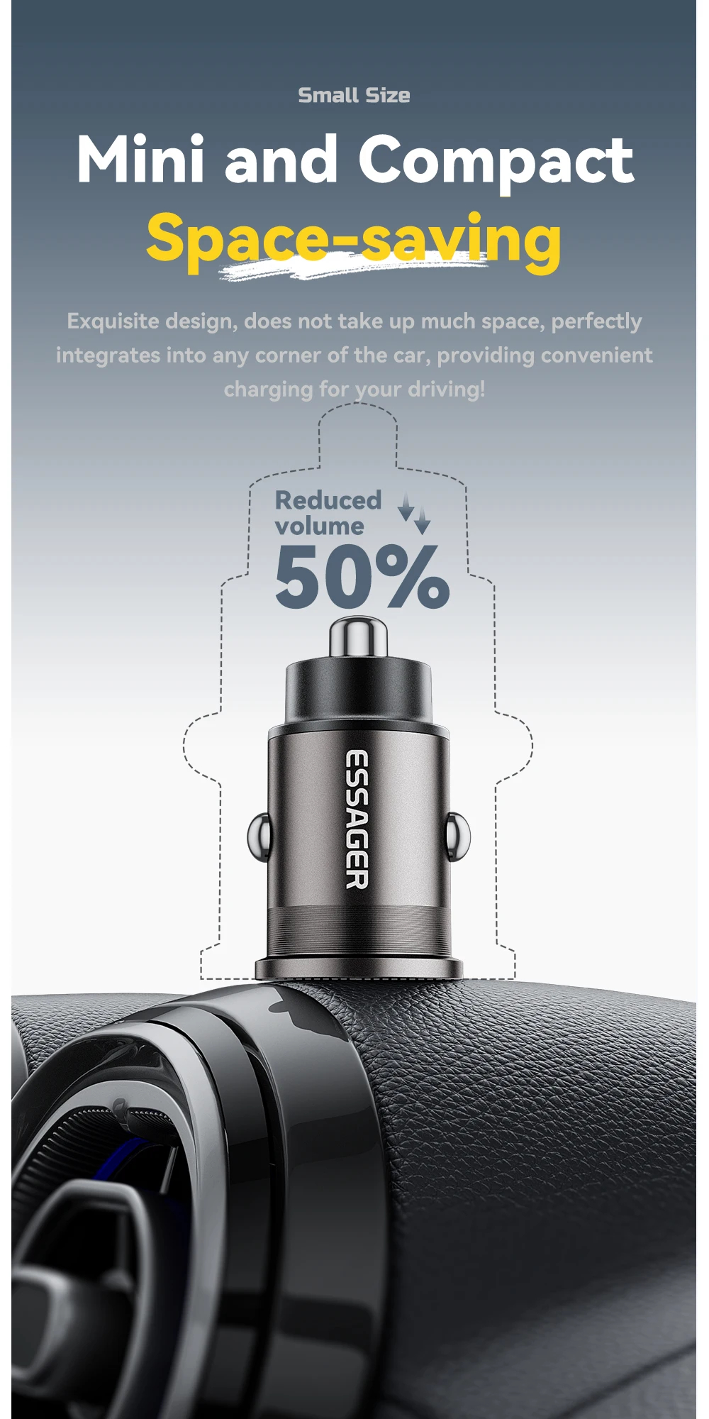 4. Compact Design: Space-saving mini design, reducing volume by 50%, ideal for seamless integration into car interiors.