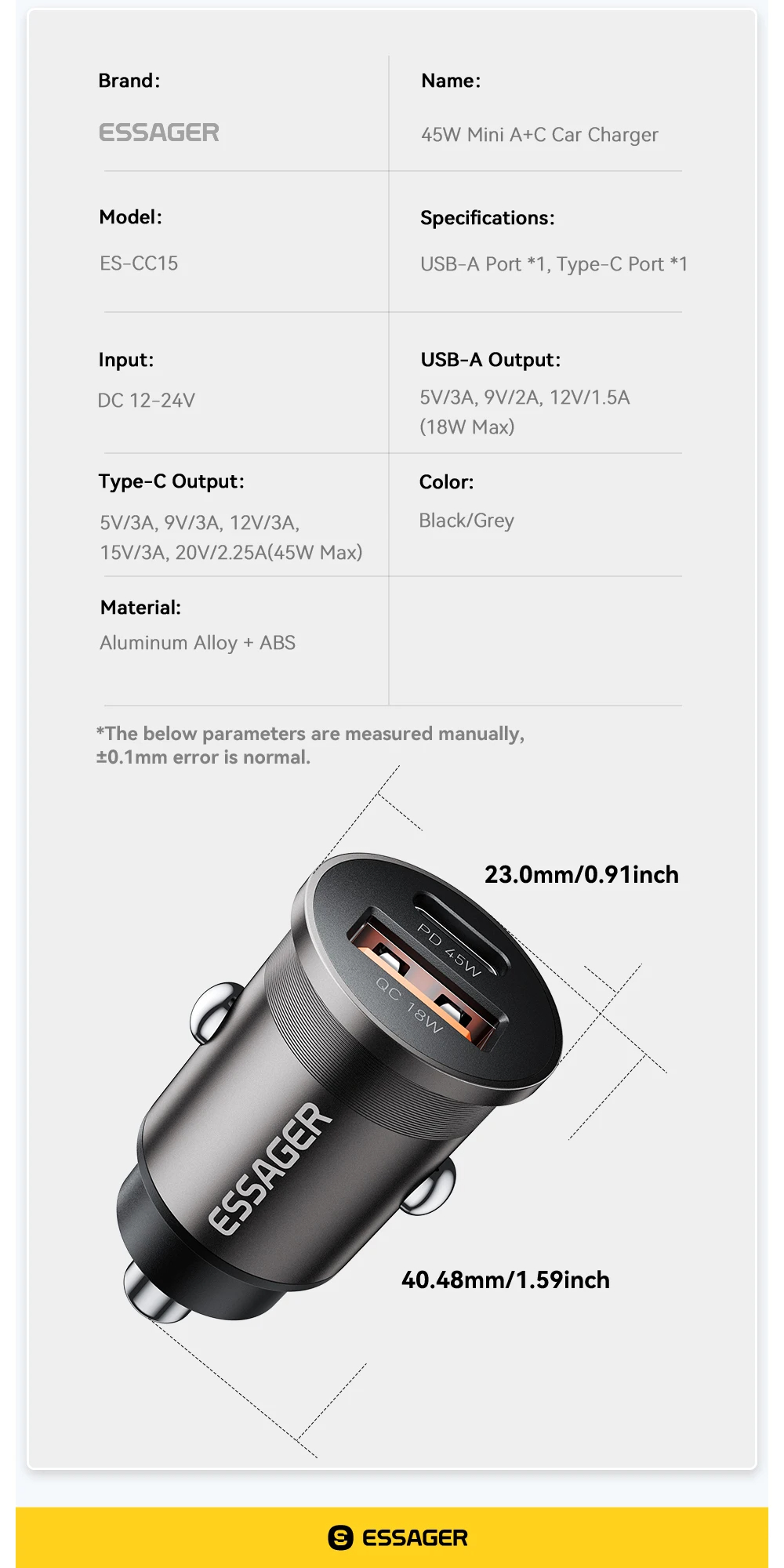 1 x Essager PD45W Mini Car Charger