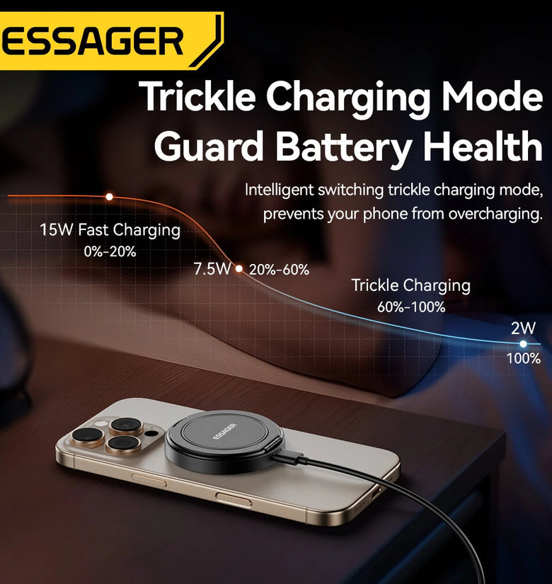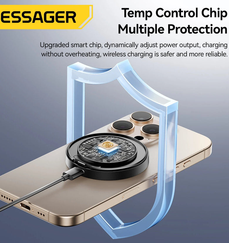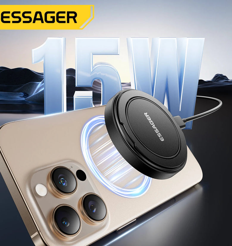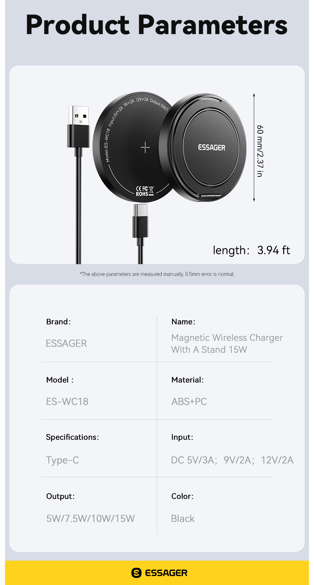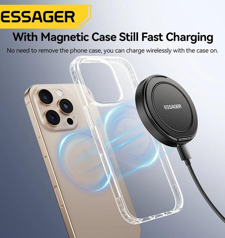 • ESSAGER ES-WC18 15W Magnetic Wireless Charger Fast Wireless Charging Pad with 360 Rotary Stand for Smart Phones for iPhone 16 16 Pro 15 14 13 Pro Max for Xiaomi 15 Ultra for Huawei Pura X for Samsung Galaxy S25 Ultra