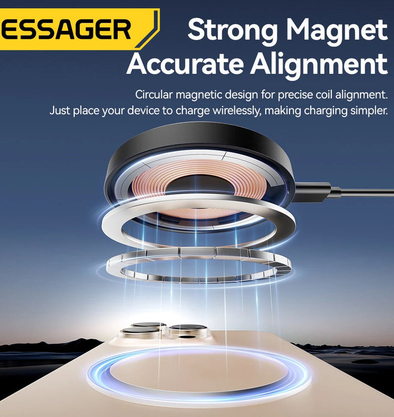 2. Strong Magnetic Alignment: Circular magnetic design ensures precise coil alignment for efficient wireless charging.
