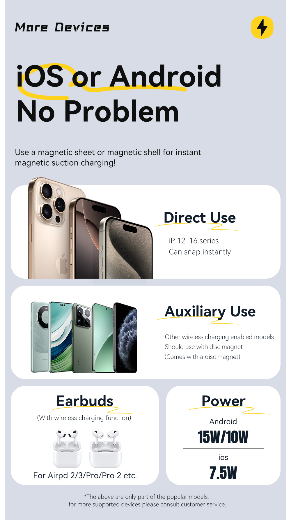 4. Widely Compatible: Suitable for both iOS and Android devices, and compatible with earbuds that support wireless charging.