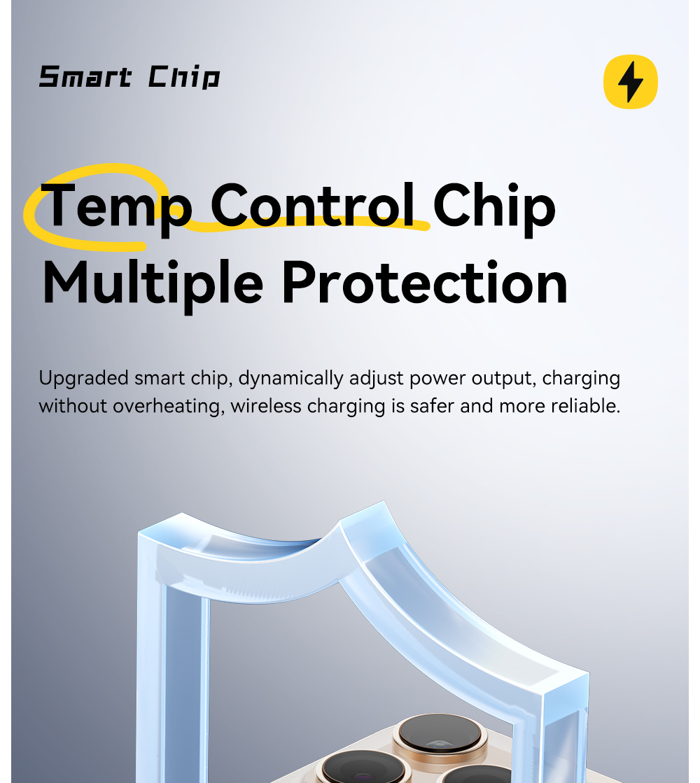 5. Upgraded Smart Chip: Dynamically adjusts power output, includes multiple security protections such as over-temperature, short circuit, and overcharge protection.