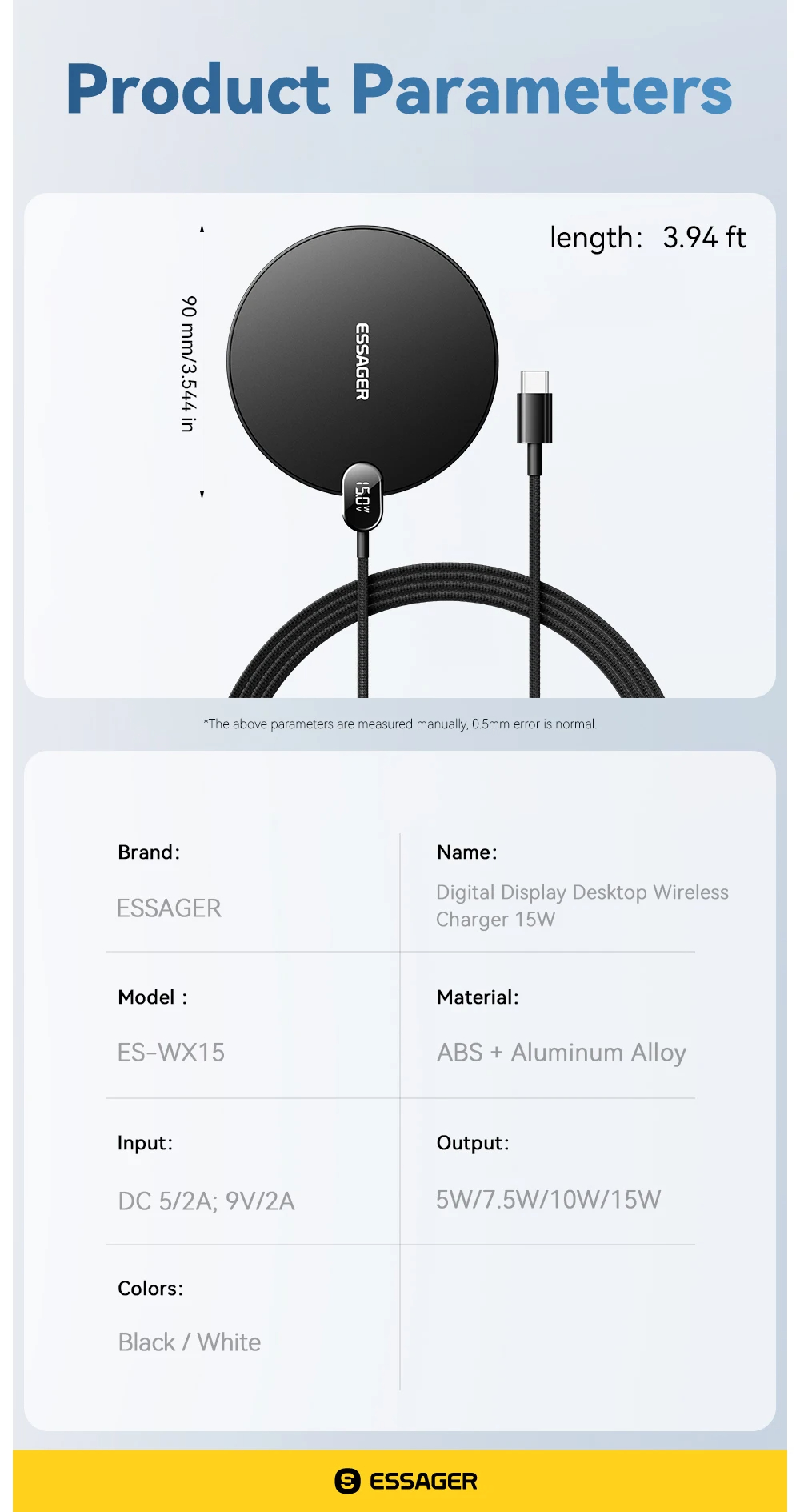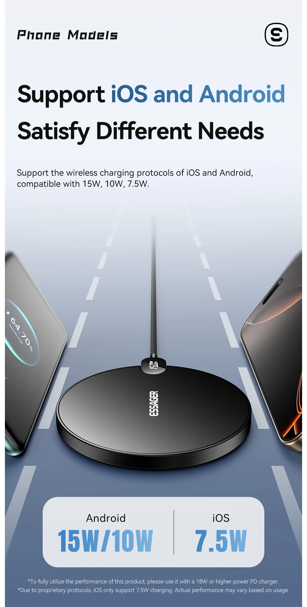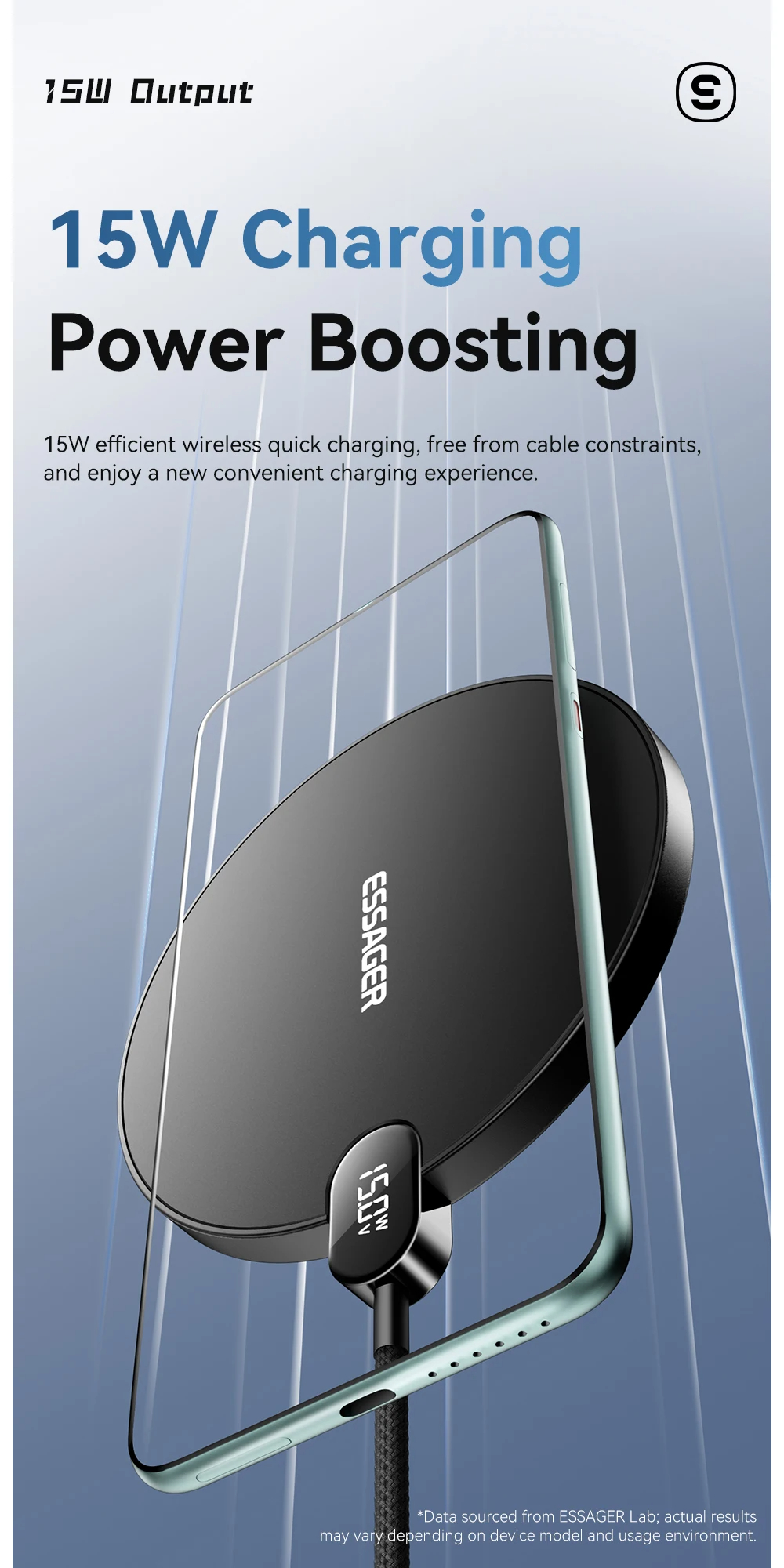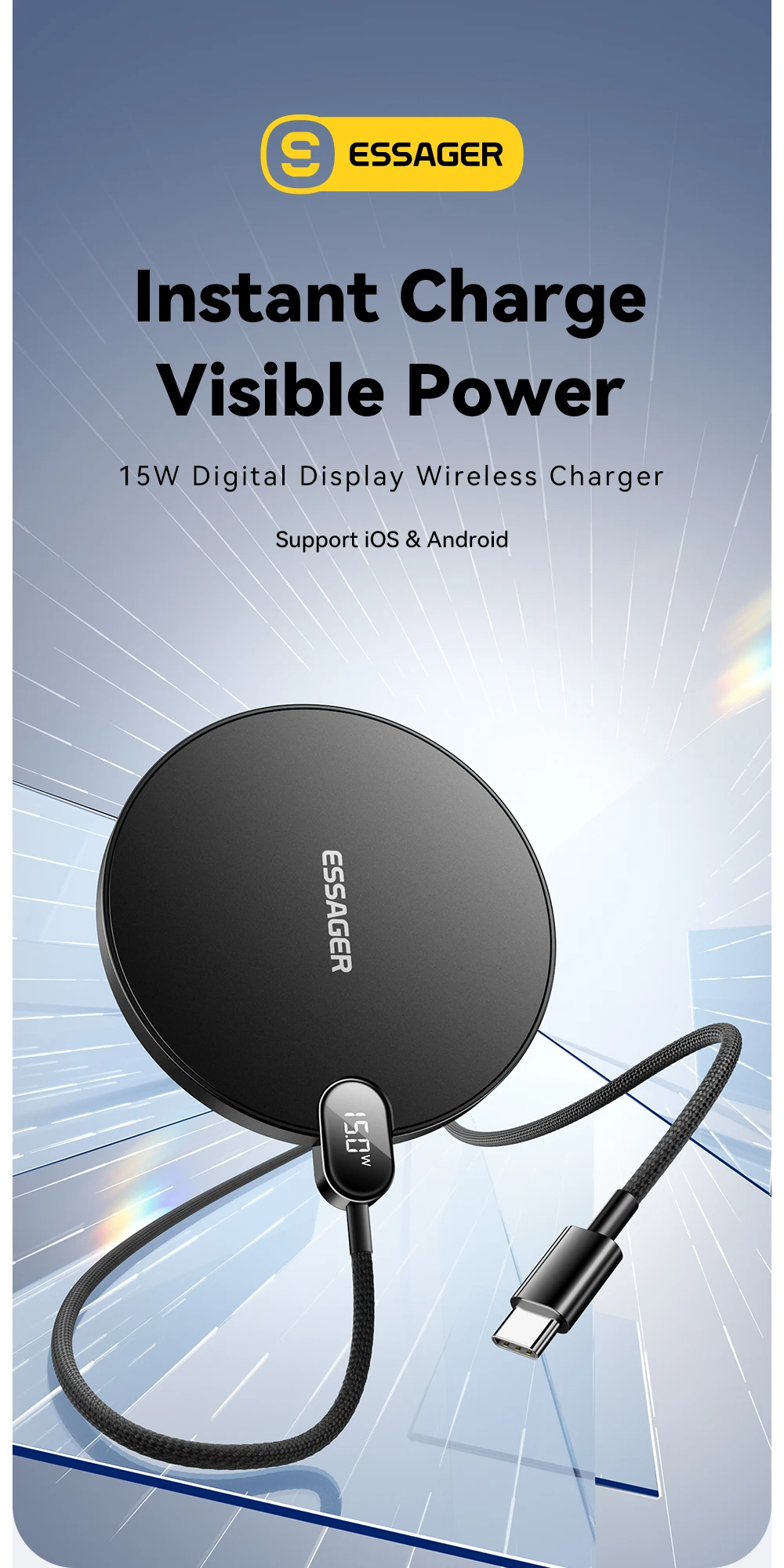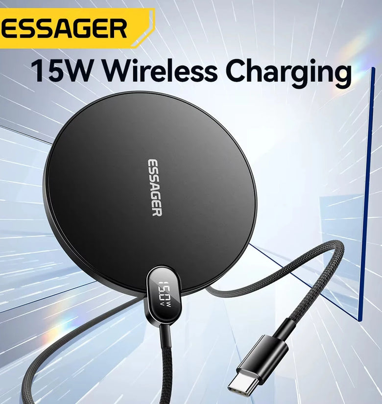 • ESSAGER ES-WX15 15W Wireless Charger with LED Power Display Fast Wireless Charging Pad for Smart Phones for iPhone 16 16 Pro 15 14 13 Pro Max for Huawei Pura 80 Ultra for SAMSUNG for XIAOMI