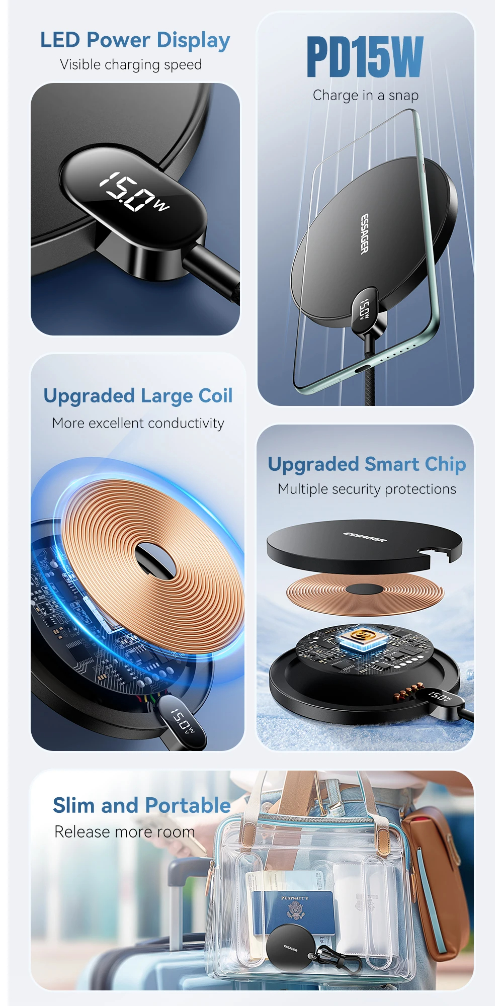 3. Upgraded Copper Coil: Enhanced conductivity and minimized power loss for optimized charging performance.