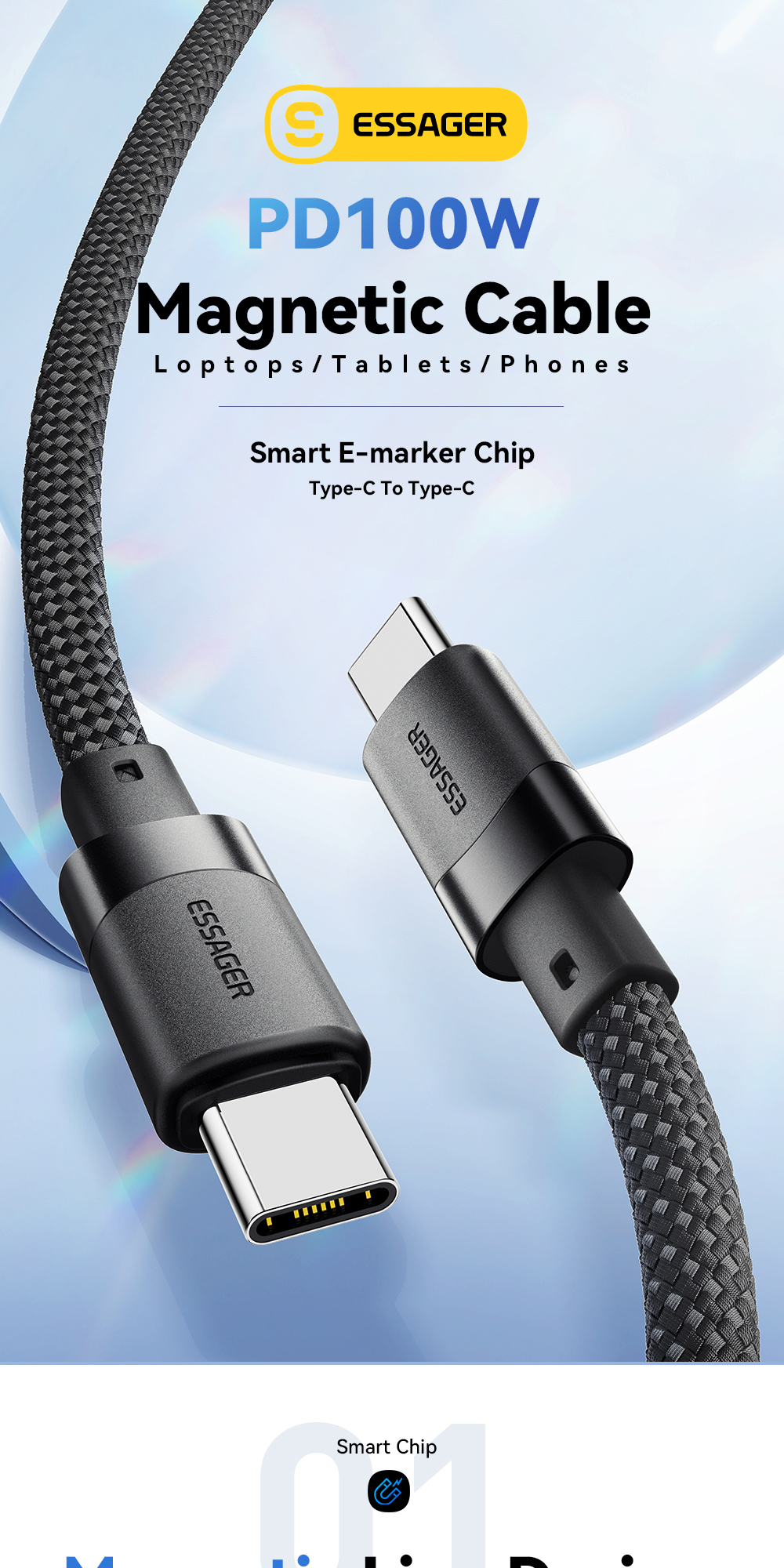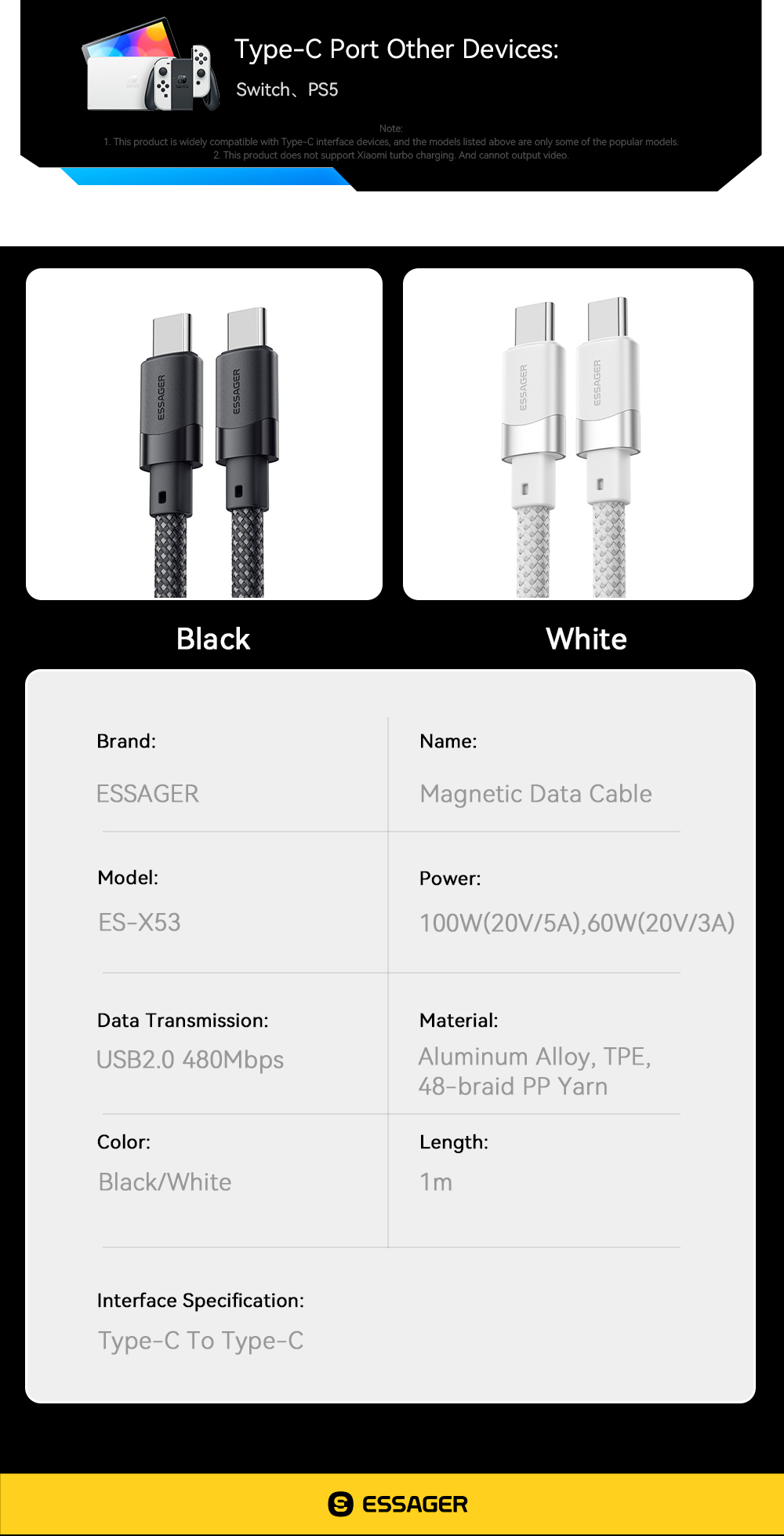 Package Includes:1x ESSAGER ES-X53 Type-C to Type-C Cable