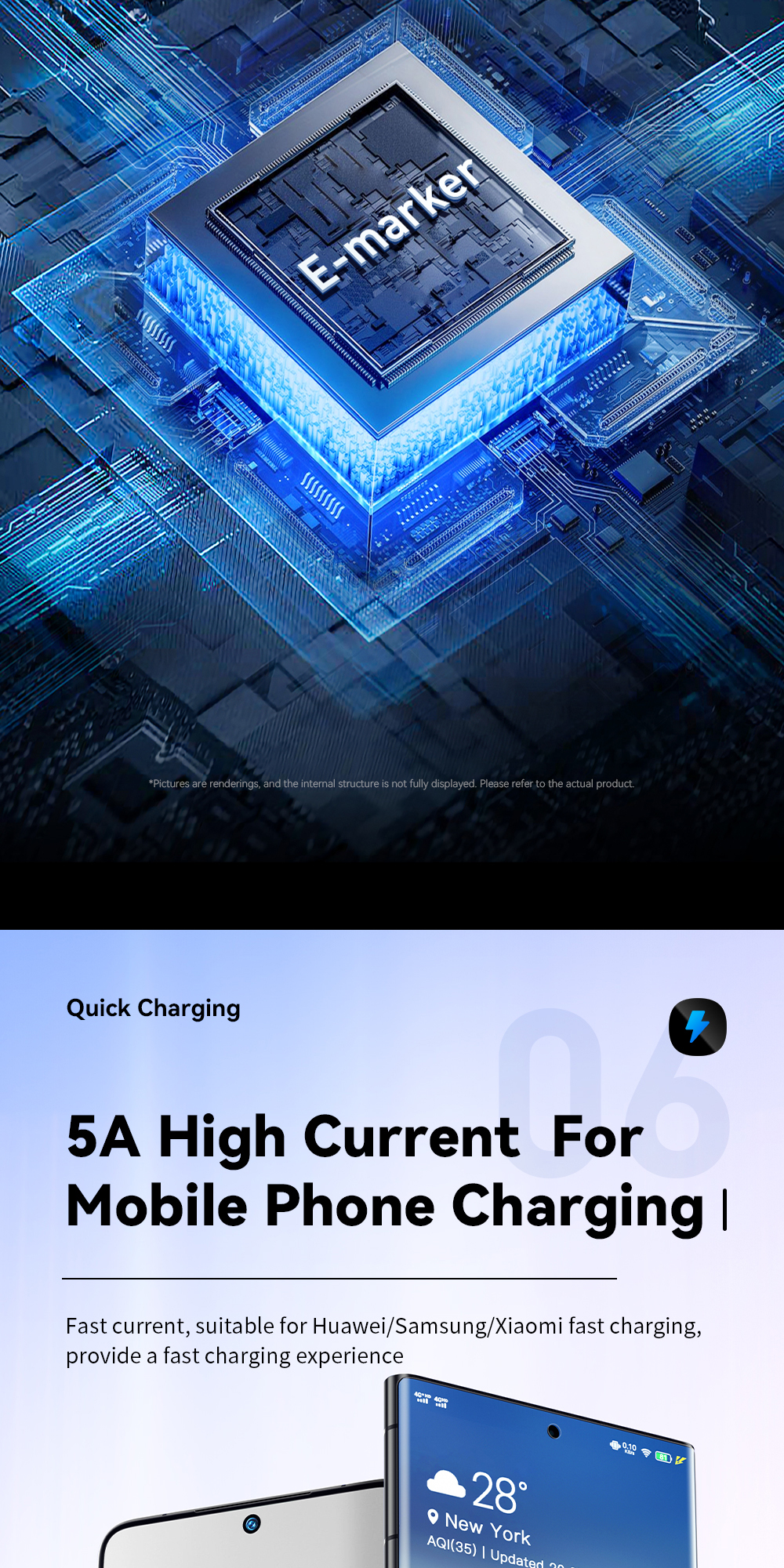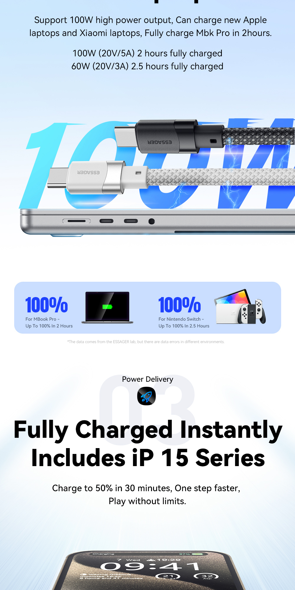 2. Fast Charging: This cable supports a power output of either 60W or 100W, delivering fast and efficient charging for your devices.